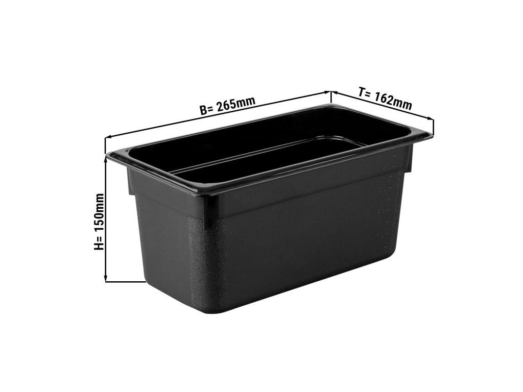 Pojemnik polipropylenowy GN 1/4 - czarny - wysokość 150mm