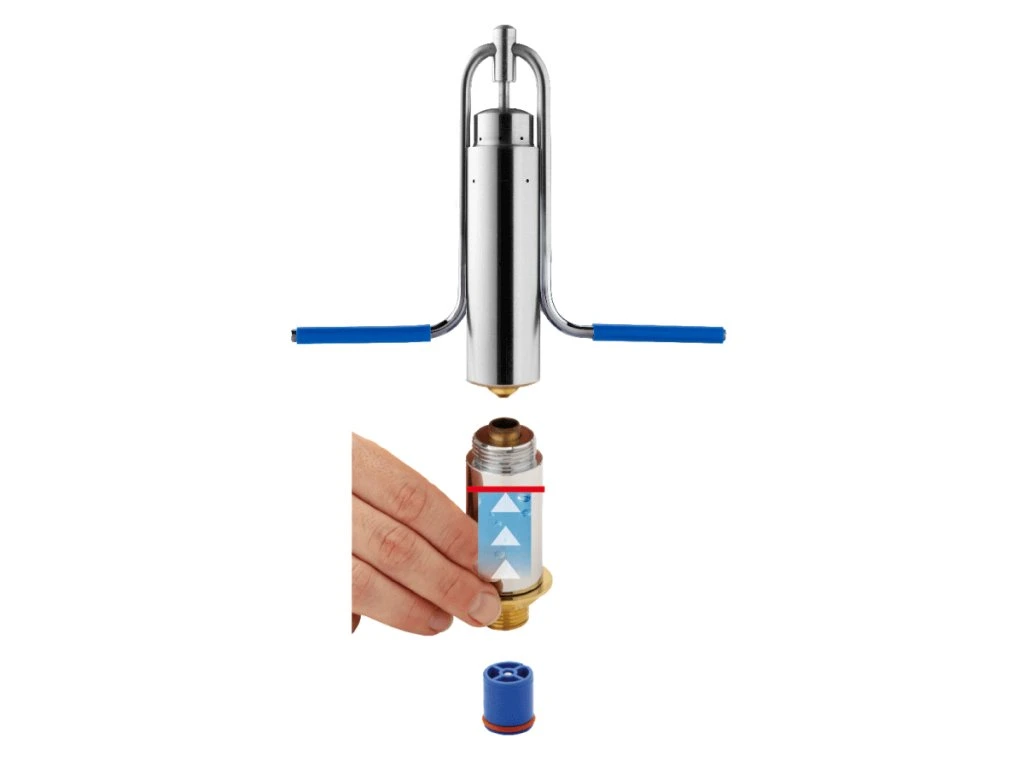 Pojemnik & szklany prysznic ze zintegrowanym regulatorem strumienia wody