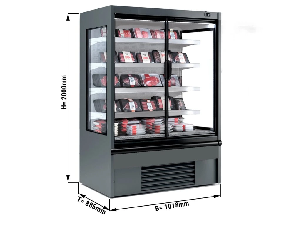 Półka chłodnicza naścienna - 1018 mm - 602 litry - z oświetleniem LED, izolowanymi szklanymi drzwiami & 4 półkami