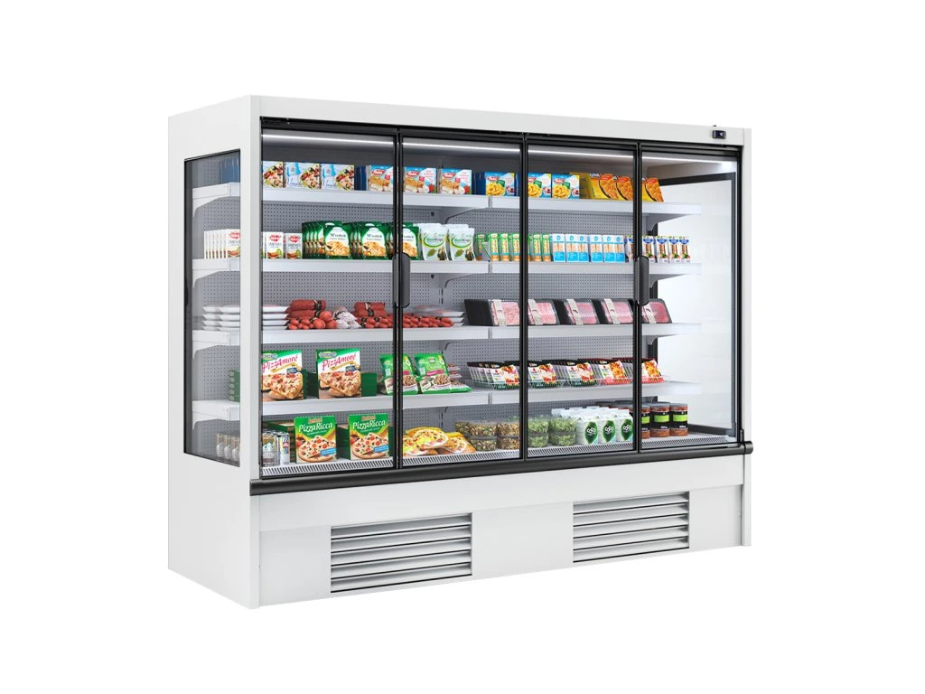 Półka chłodnicza naścienna - 2580 mm - 1408 litrów - z oświetleniem LED, izolowanymi szklanymi drzwiami & 4 półkami