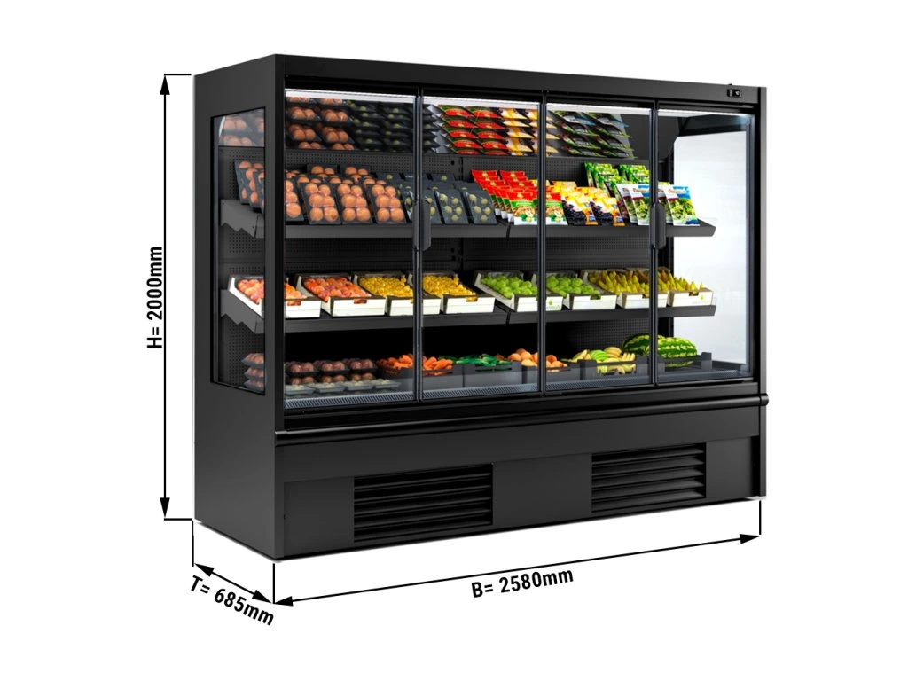 Półka chłodnicza naścienna - 2580 mm - 740 litrów - z oświetleniem LED, izolowanymi szklanymi drzwiami & 2 półkami