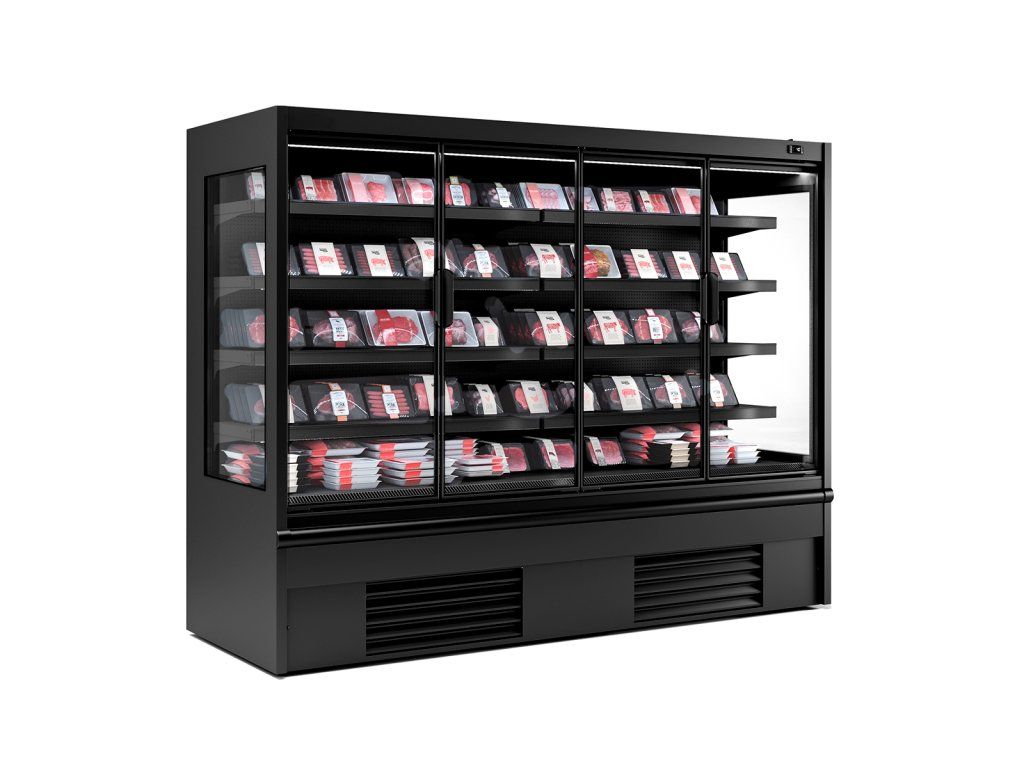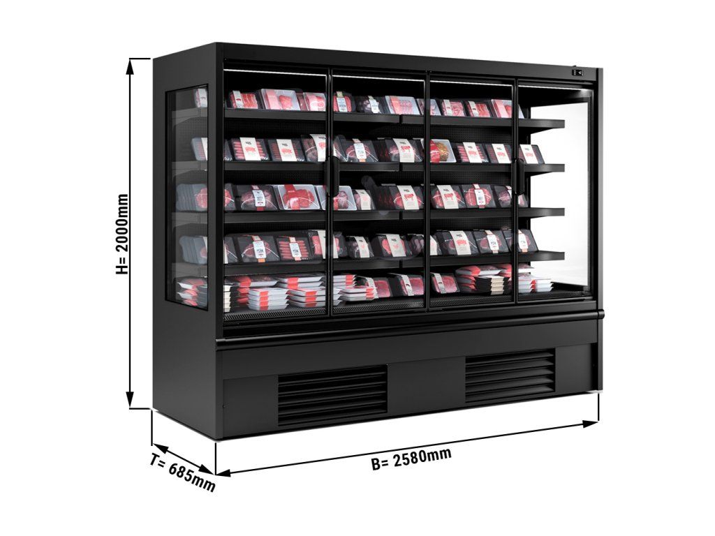 Półka chłodnicza naścienna - 2580 mm - 910 litrów - z oświetleniem LED, izolowanymi szklanymi drzwiami & 4 półkami