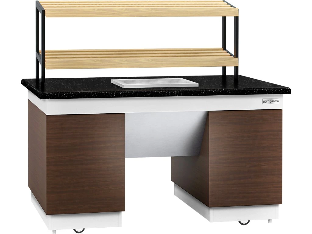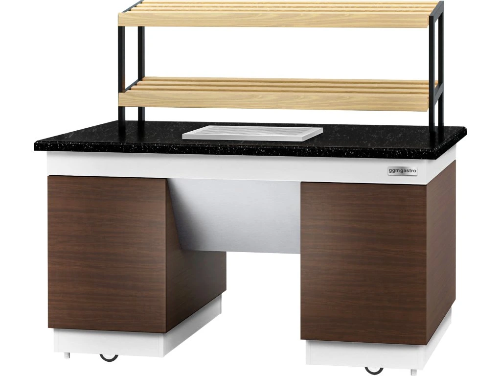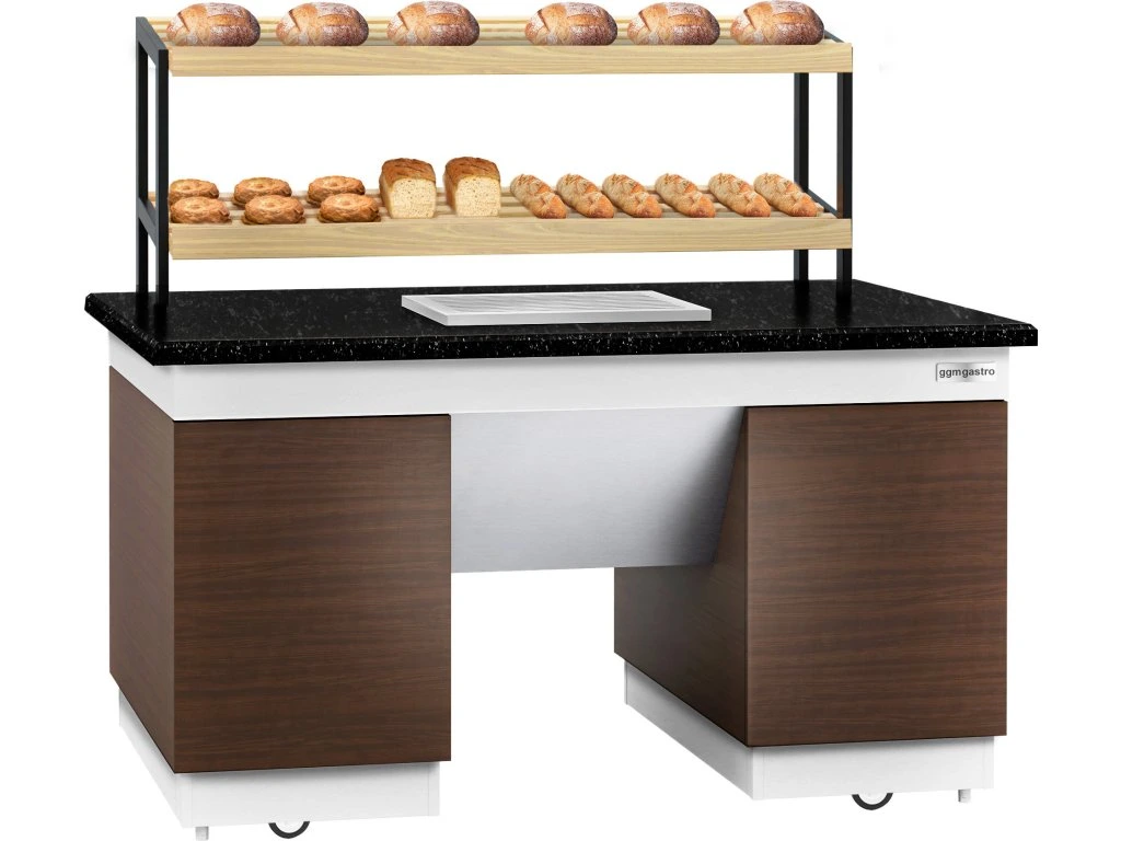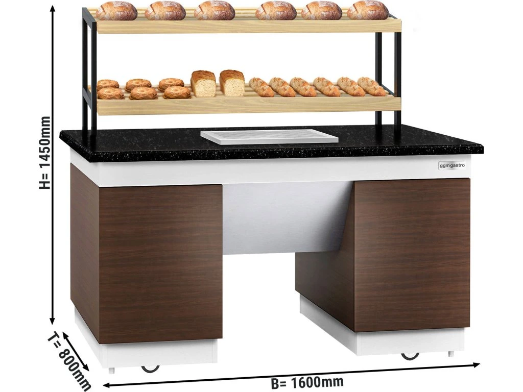 Półka na pieczywo DUBLIN - 1600 mm - z kółkami - blat z czarnego granitu