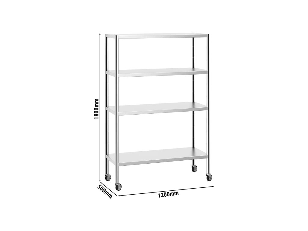 Regał ze stali nierdzewnej PREMIUM - 1,2 x 0,5 m - z 4 półkami (REGULOWANA) - w zestawie 4 kółka