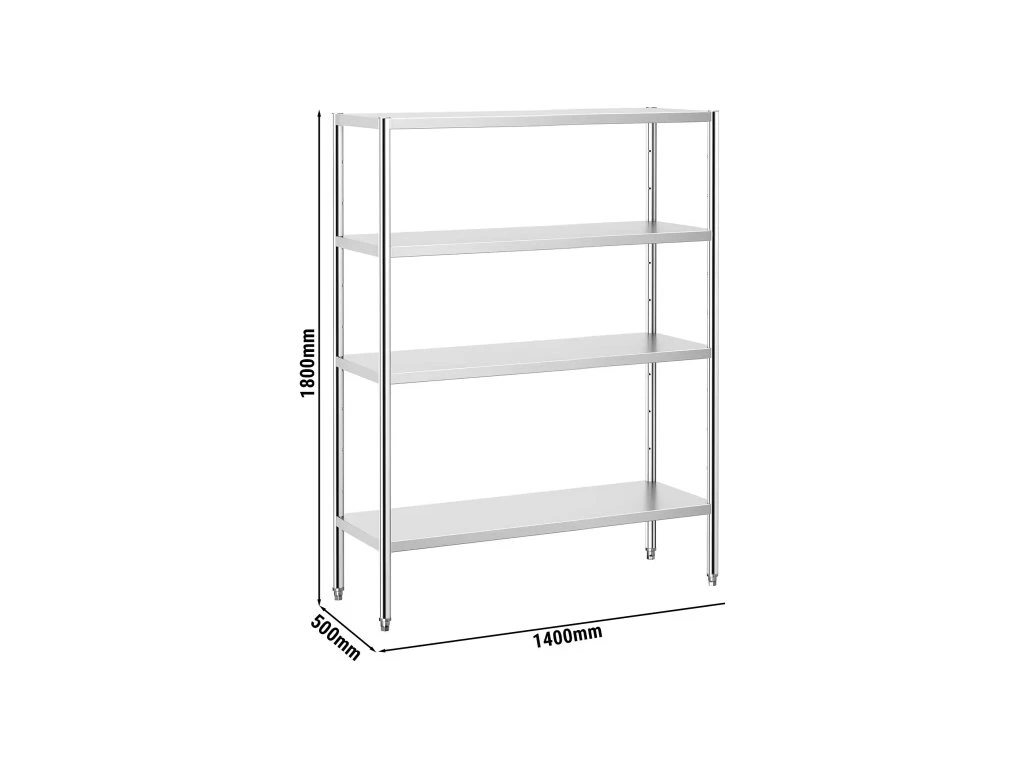 Regał ze stali nierdzewnej PREMIUM - 1,4 x 0,5 m - z 4 półkami (REGULOWANA)