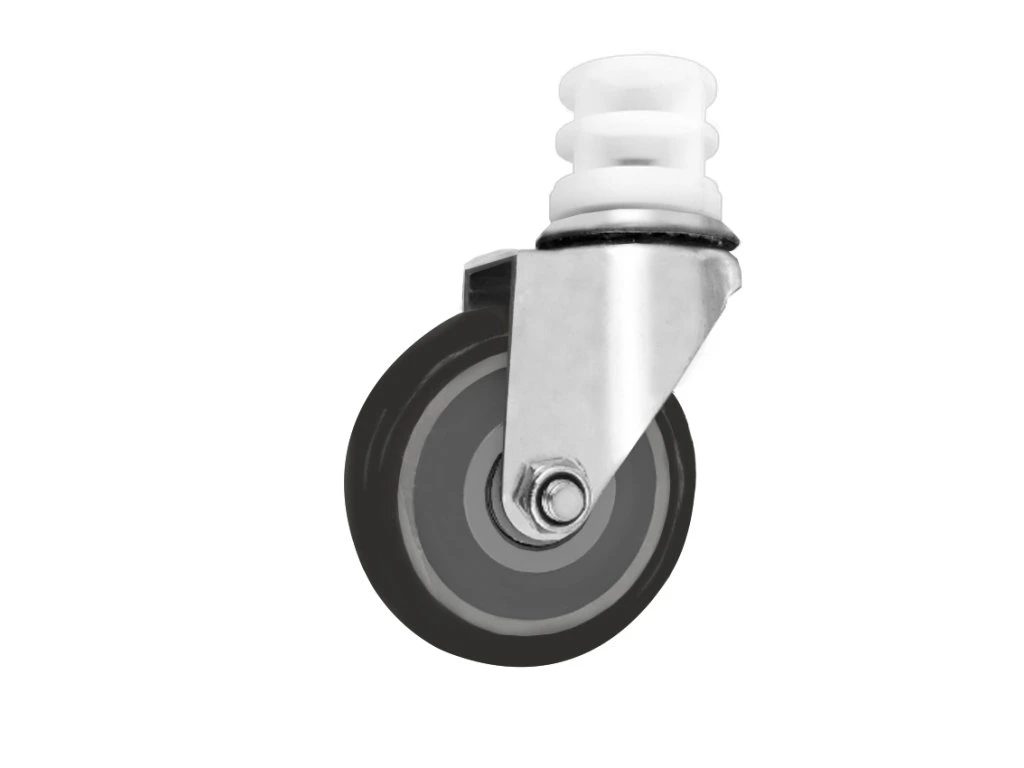 - Aby zamontować kółka, należy usunąć zieloną tuleję gwintowaną z nóżek półki. Zalecamy użycie młotka i śrubokręta .