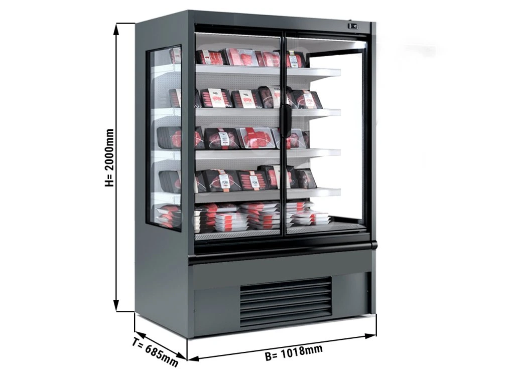 Półka ścienna chłodnicza - 1018 mm - 341 litrów - z oświetleniem LED, izolowanymi szklanymi drzwiami & 4 półkami
