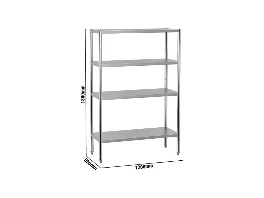 Półka ze stali nierdzewnej ECO - 1,2 x 0,5 m - z 4 półkami (REGULOWANA)