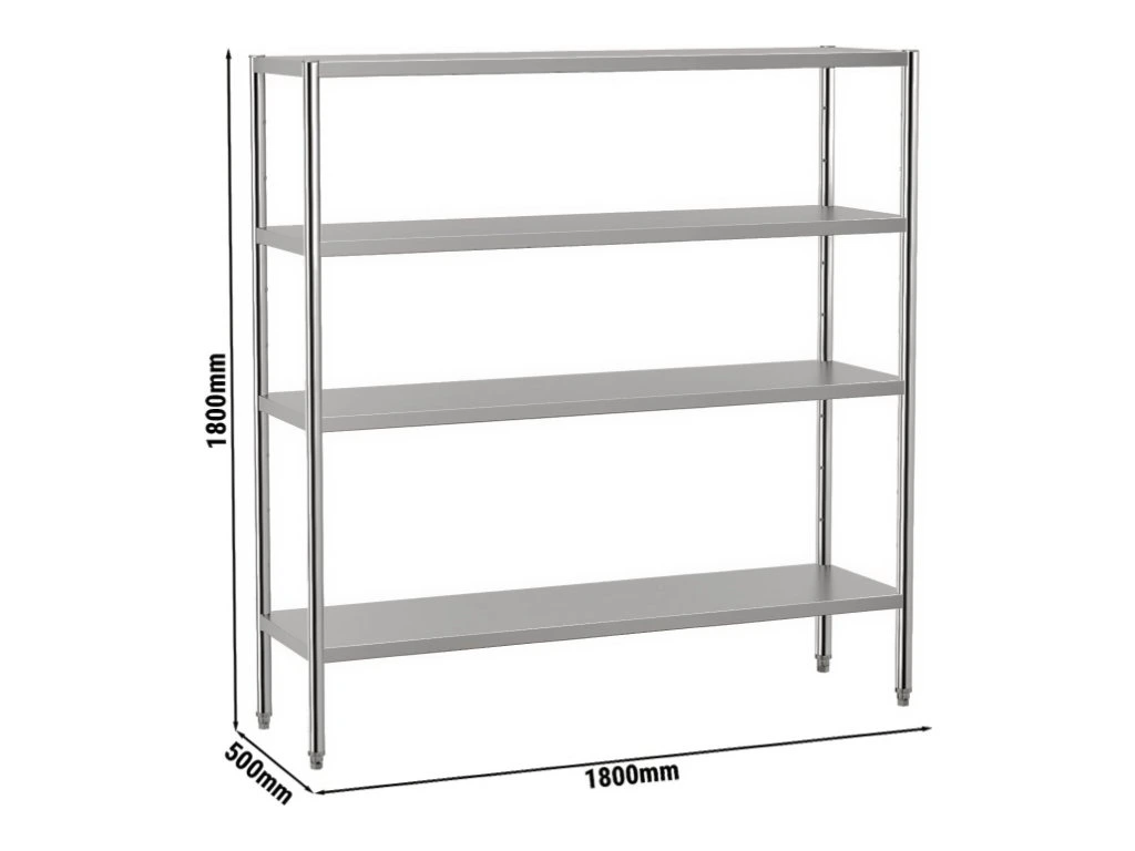 Regał ze stali nierdzewnej ECO - 1,8 x 0,5 m - z 4 półkami (REGULOWANA)