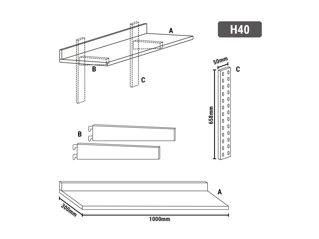- Wymiary zewnętrzne szer. x gł. x wys: 1.000 mm x 300 mm x 40 mm