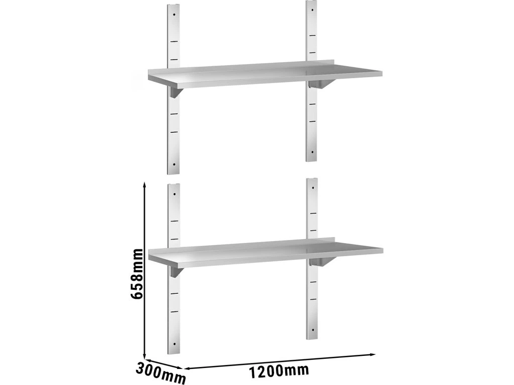 Półki ścienne PREMIUM - 1200x300mm - z 2 piętrami
