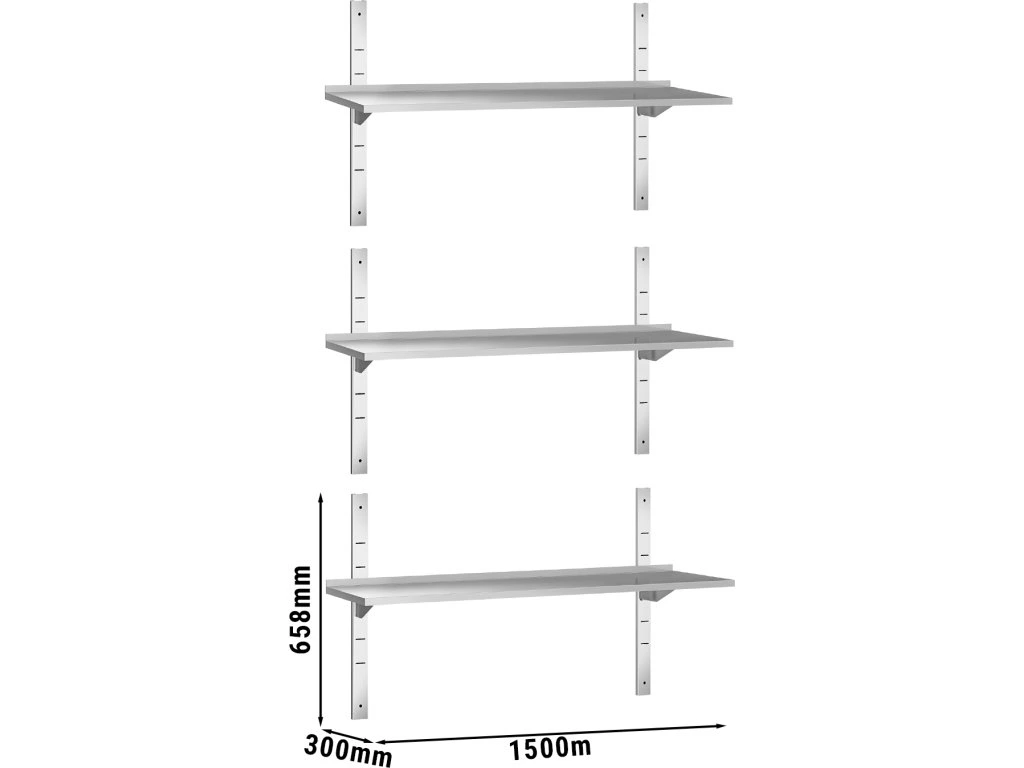 Półki ścienne PREMIUM - 1500x300mm - z 3 piętrami