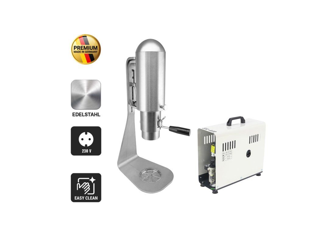 - Sama prasa do lodu nie wymaga żadnej energii elektrycznej. Działa wyłącznie na sprężone powietrze