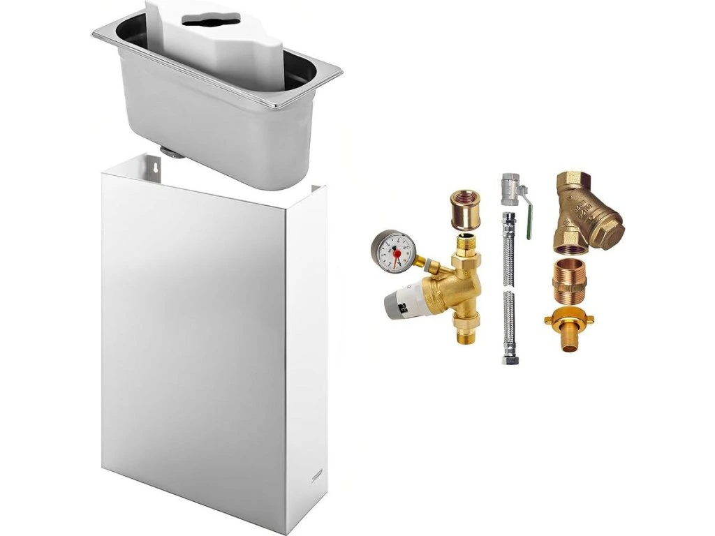 Prysznic porcjujący i łopatkowy ze zlewem porcjującym i zintegrowanym sitkiem