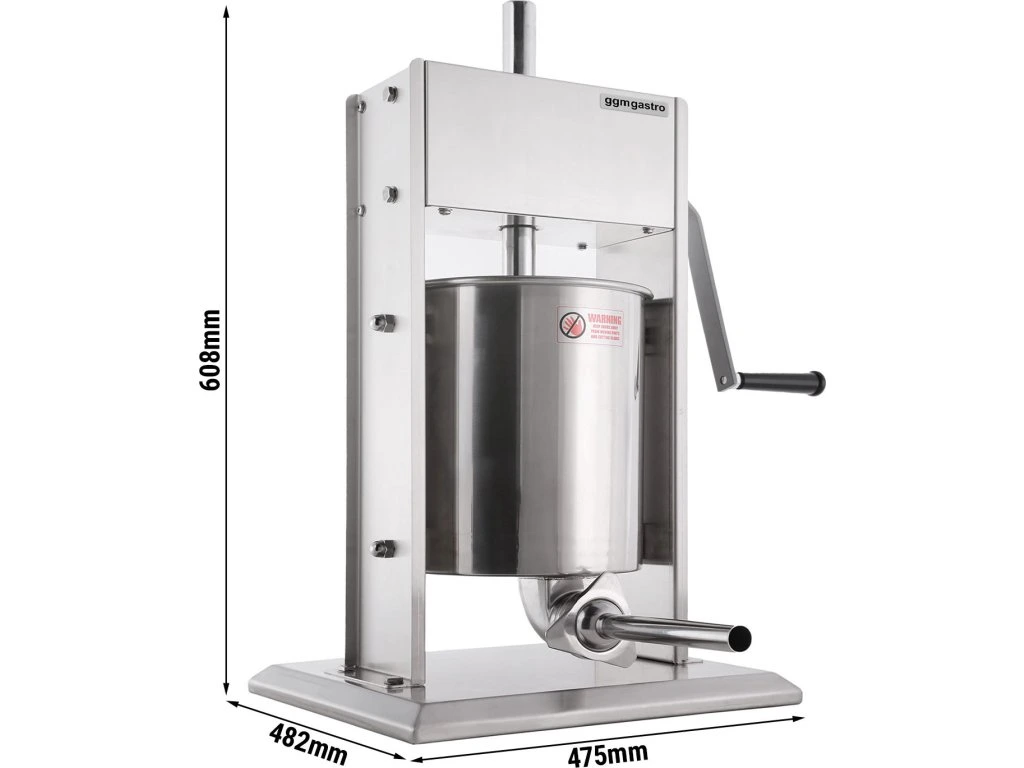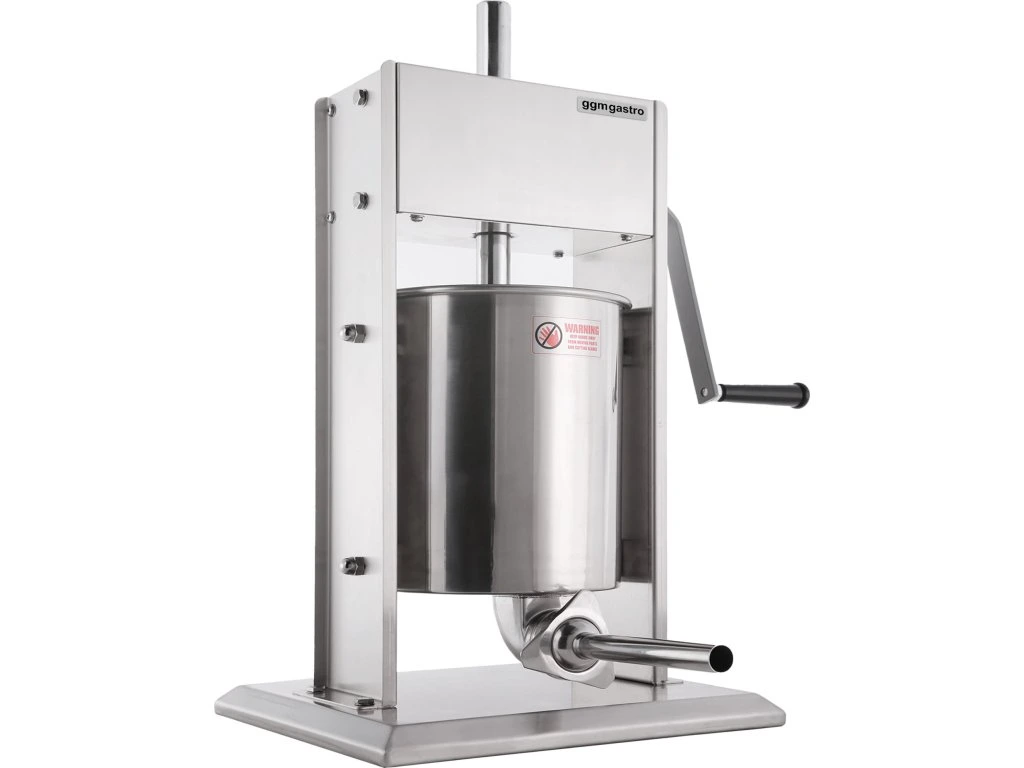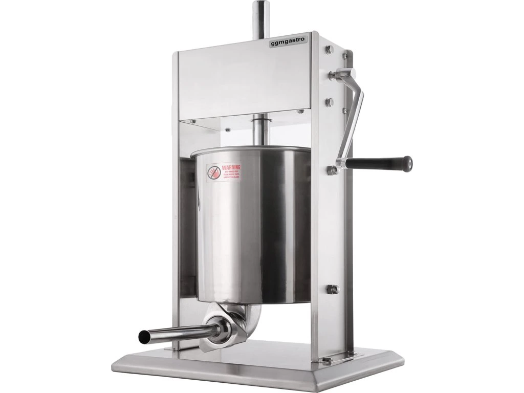 - Niezwykle wytrzymała nadziewarka do kiełbas do ręcznego sterowania w wersji pionowej wraz z nadziewarką. cztery zbiorniki na kiełbasę o różnych średnicach.