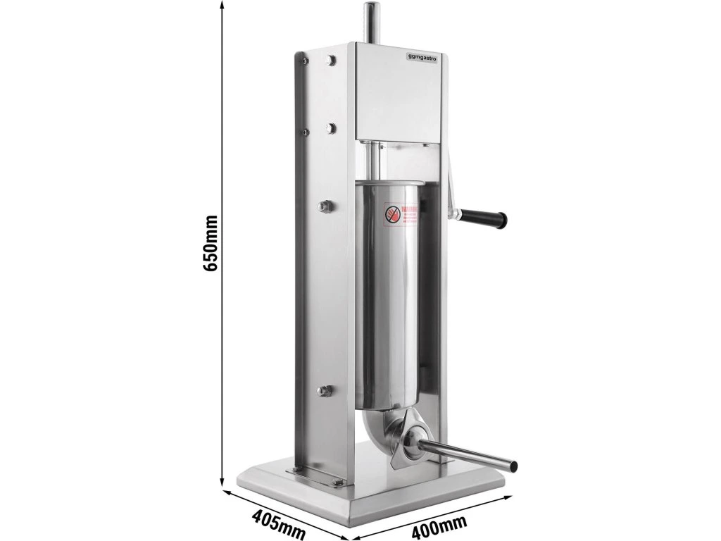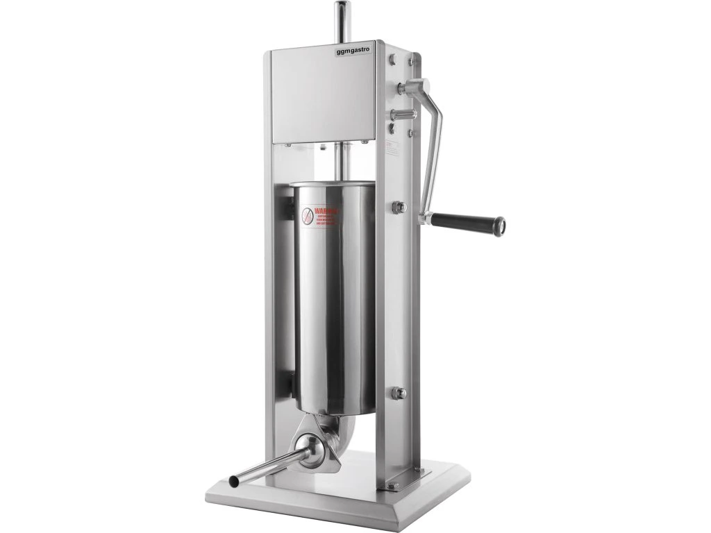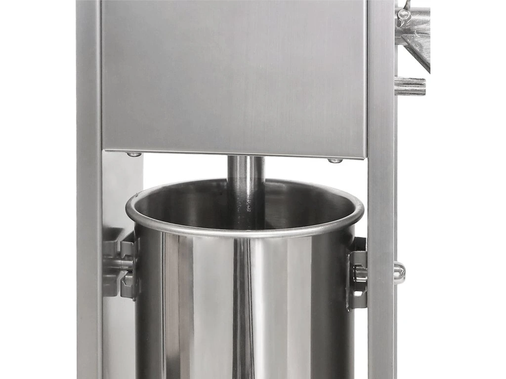 - Niezwykle wytrzymała ręczna nadziewarka do kiełbas o pionowej konstrukcji z czterema koszami na kiełbasy o różnych średnicach.