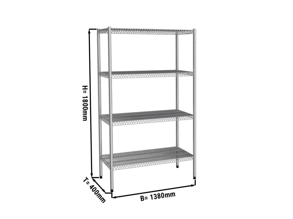 Półka ze stali nierdzewnej - 1370x360 mm - z 4 półkami drucianymi (FEST)