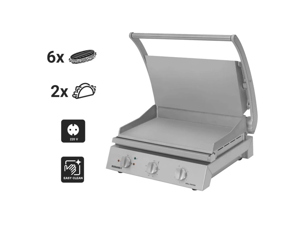 ROBAND | grill kontaktowy | grill do hamburgerów - 2,2 kW - gładka góra i dół - powierzchnia grillowania: 375x275mm