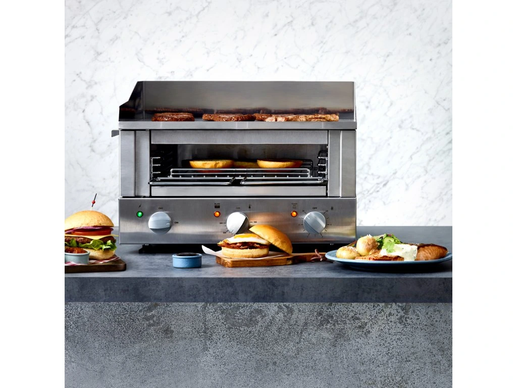 - Urządzenie wielofunkcyjne składające się z płyty grillowej i salamandry