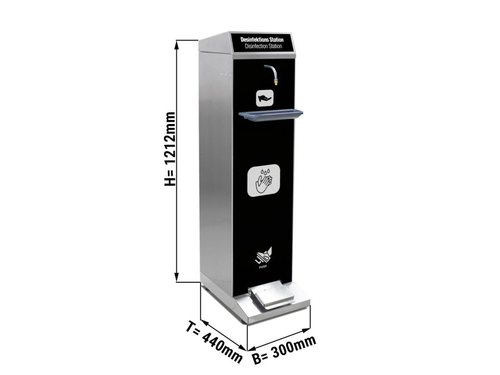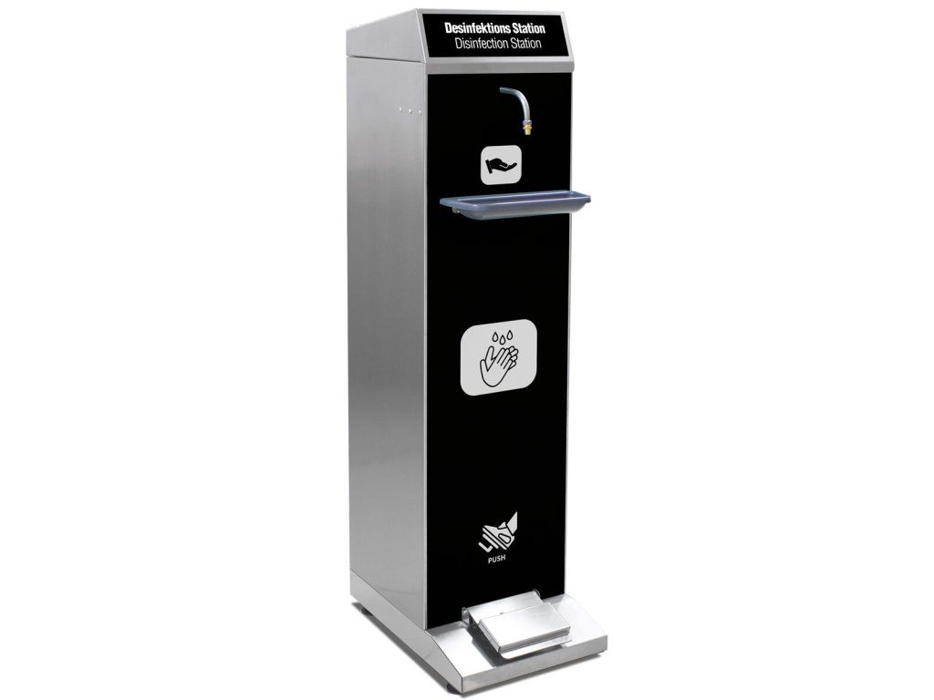 Stacja dezynfekacyjna ze stali nierdzewnej - z tacą ociekową i obsługą nożną