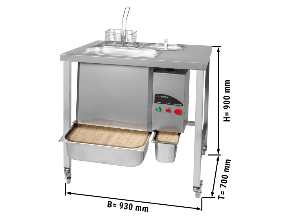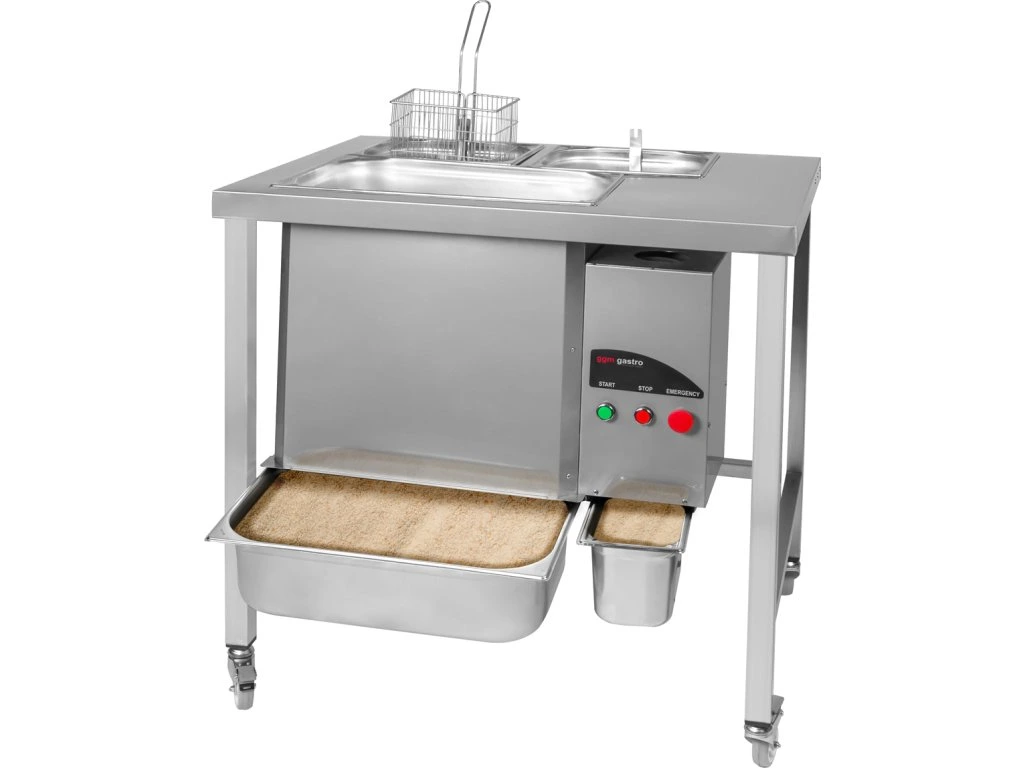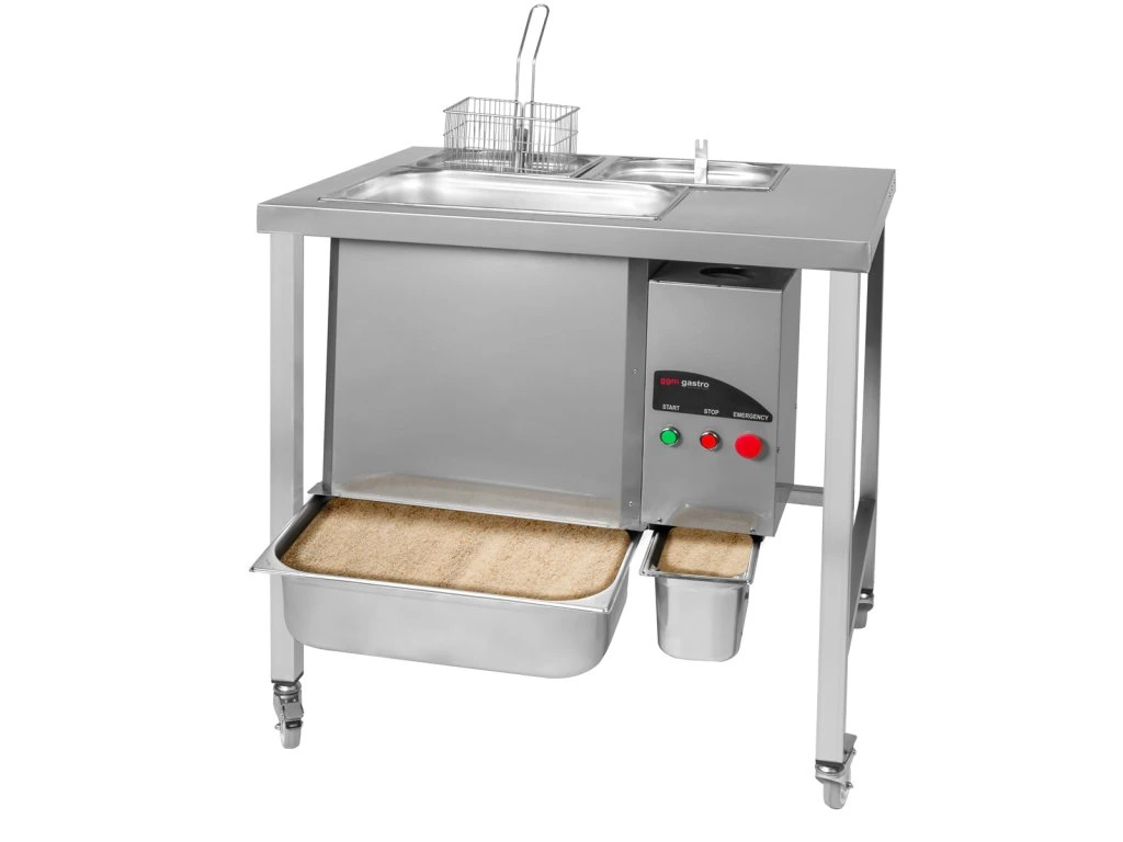 - stacja panierowania z miskami 3 na mąkę, jajka i bułkę tartą