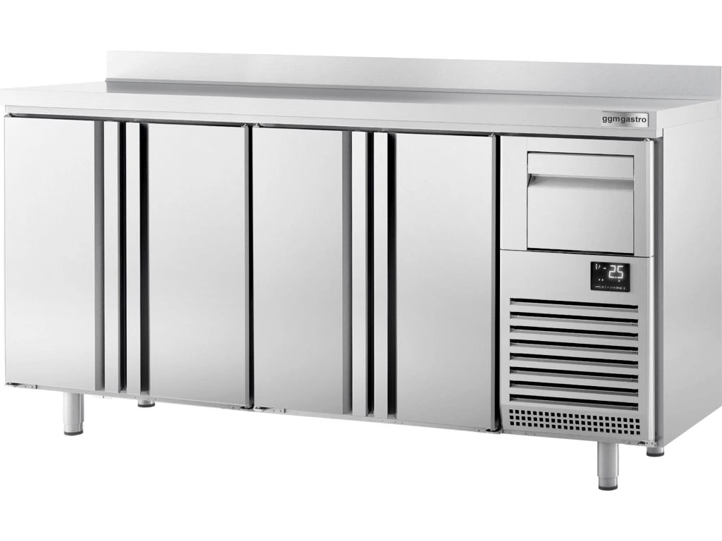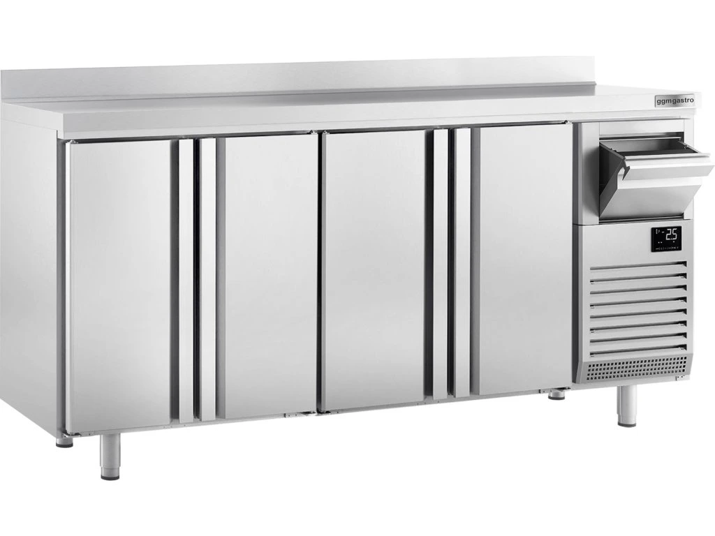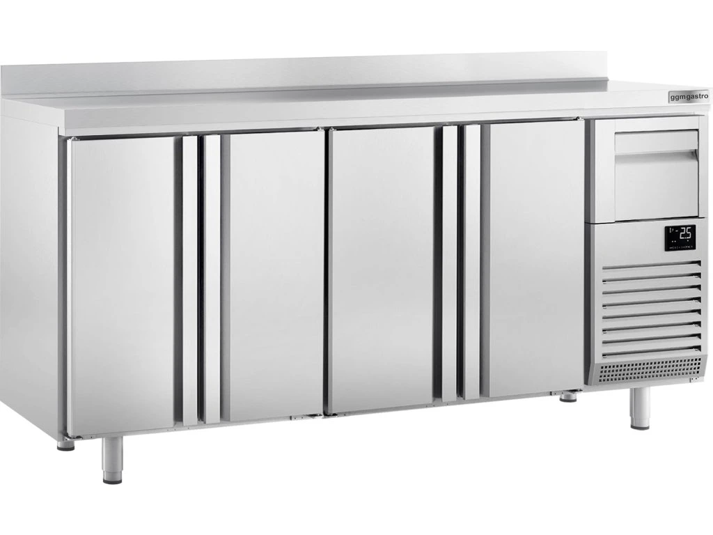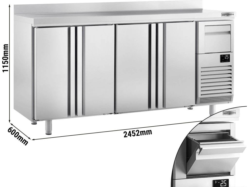 stół chłodniczy barowy na napoje PREMIUM PLUS - 2450x600mm - z 4 drzwiami, panelem tylnym & kołatką do kawy