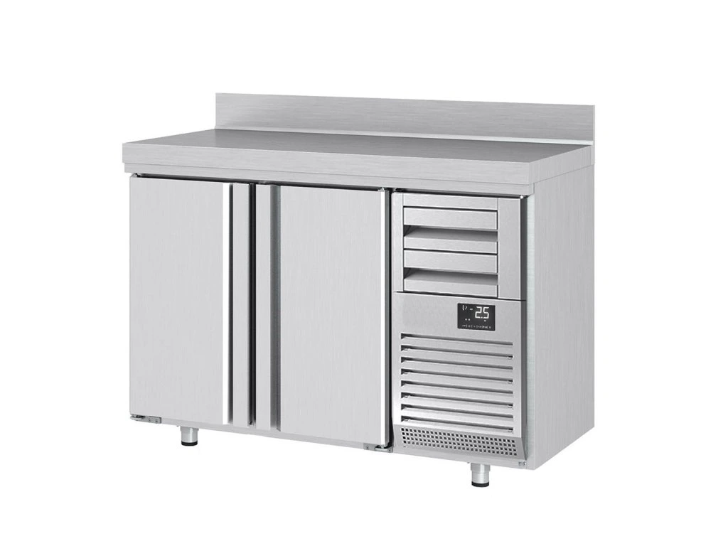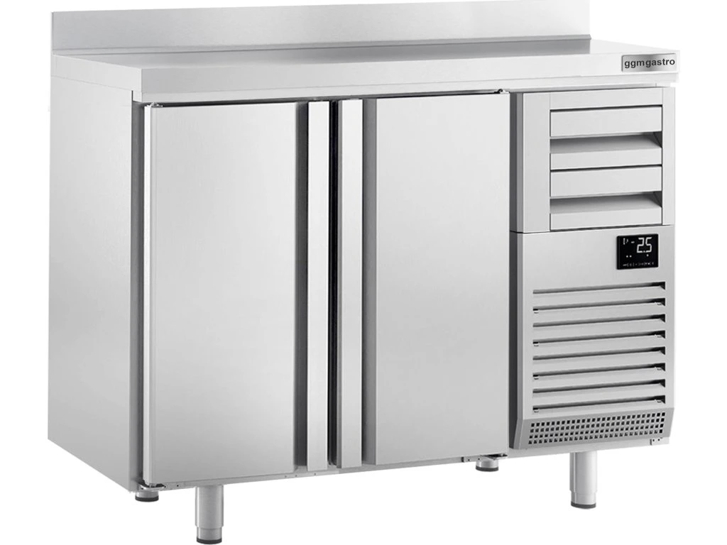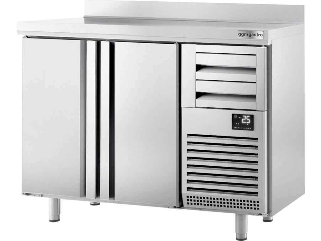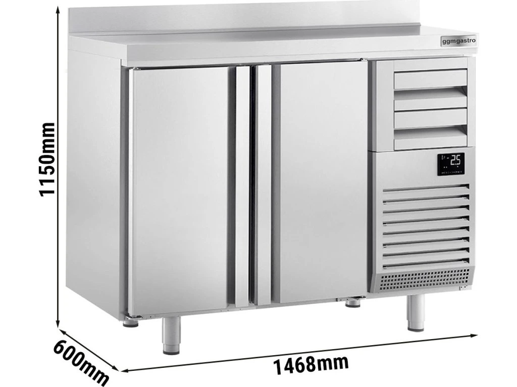 stół chłodniczy barowy & do napojów PREMIUM PLUS - 1470x600 mm - z 2 drzwiami, 2 szufladami & panelem tylnym