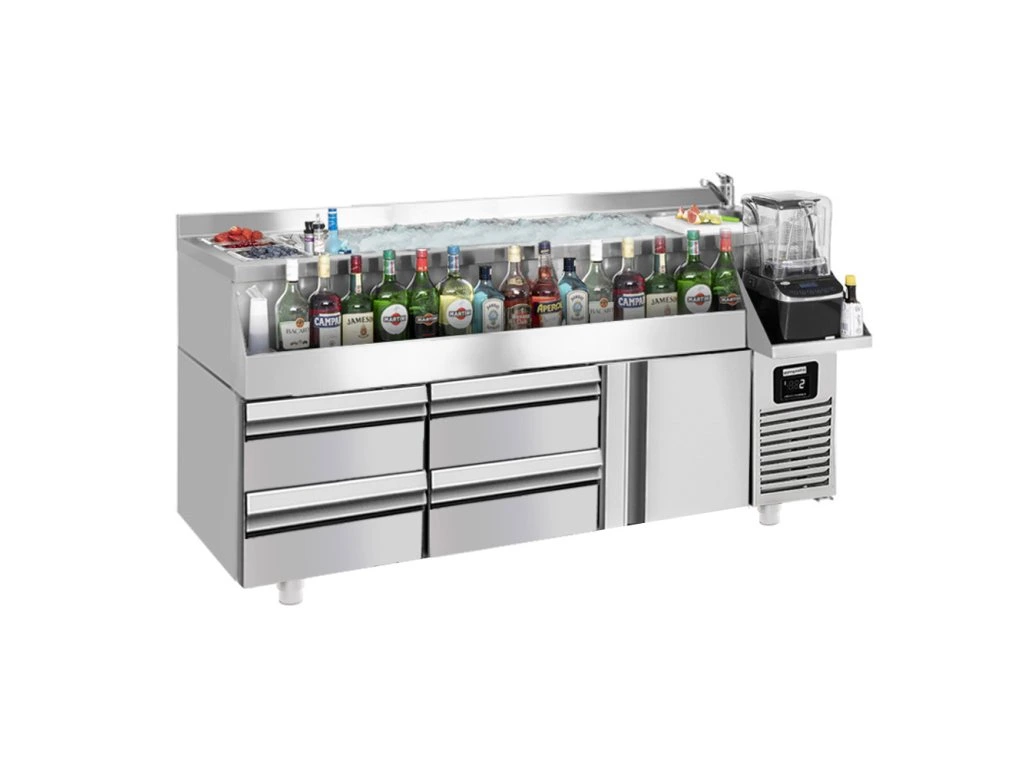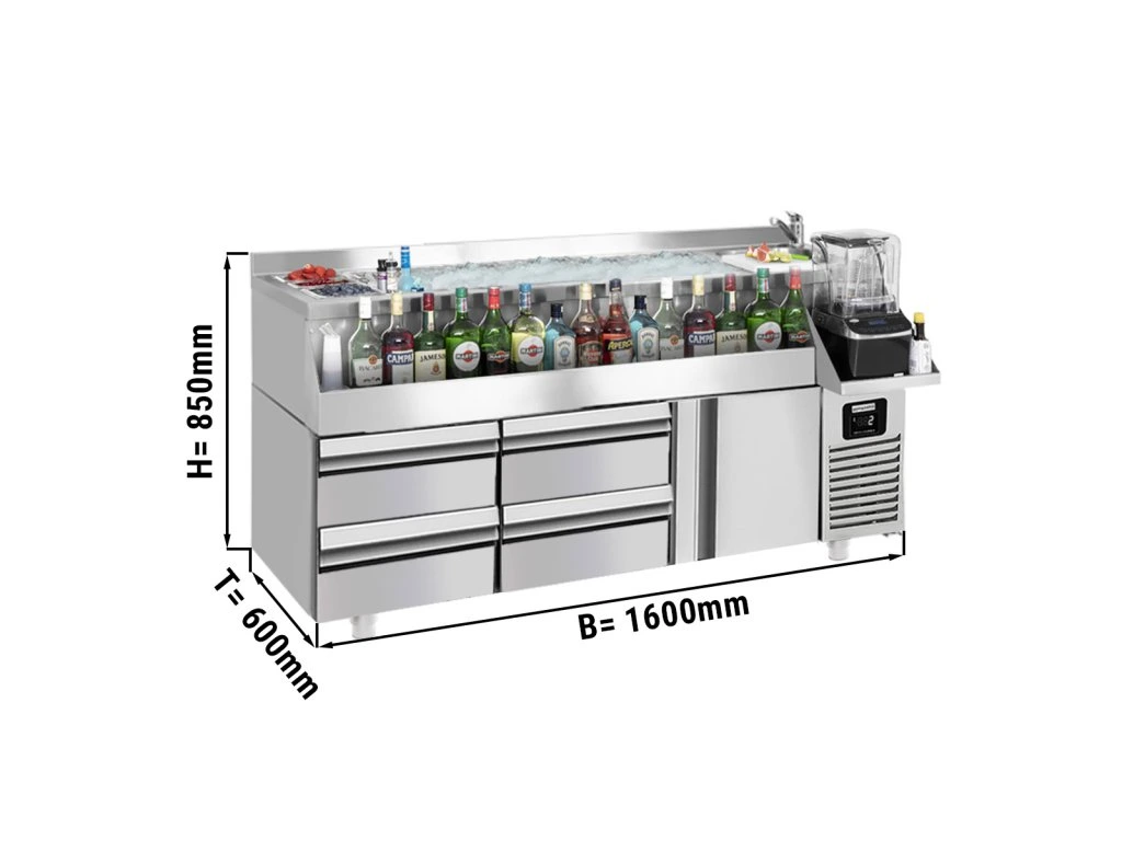 Stół barowy i chłodniczy do napojów - 1600x600 mm - 235 litrów - z 1 drzwiami, 4 szufladami i półkami