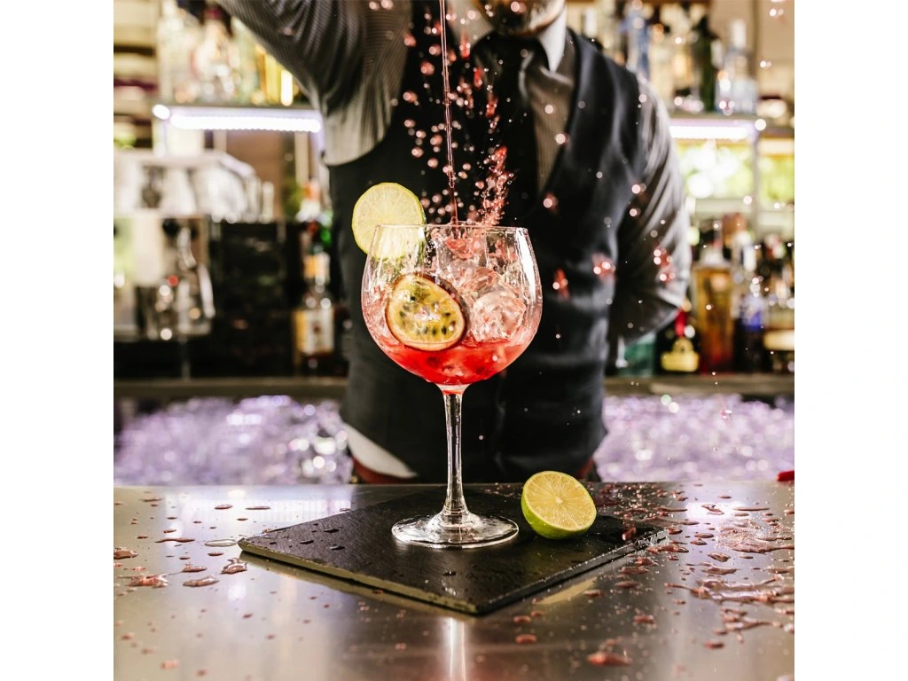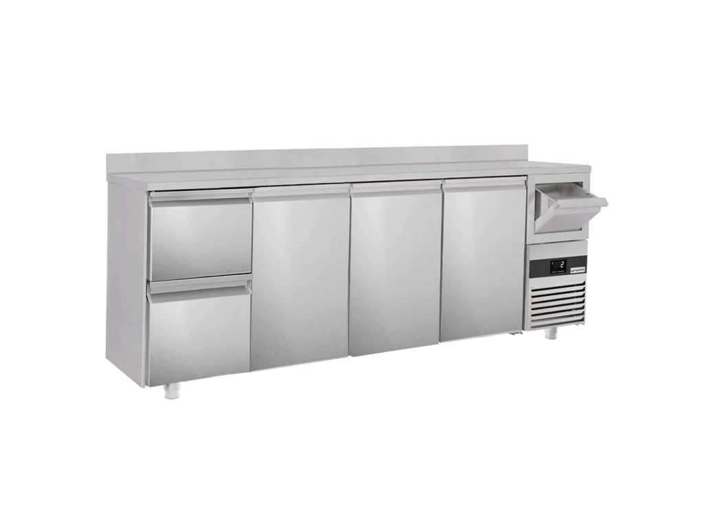 Stół barowy i chłodniczy do napojów PREMIUM - 2690x600 mm - 3 drzwi, 2 szuflady, panel tylny i kołatka do kawy