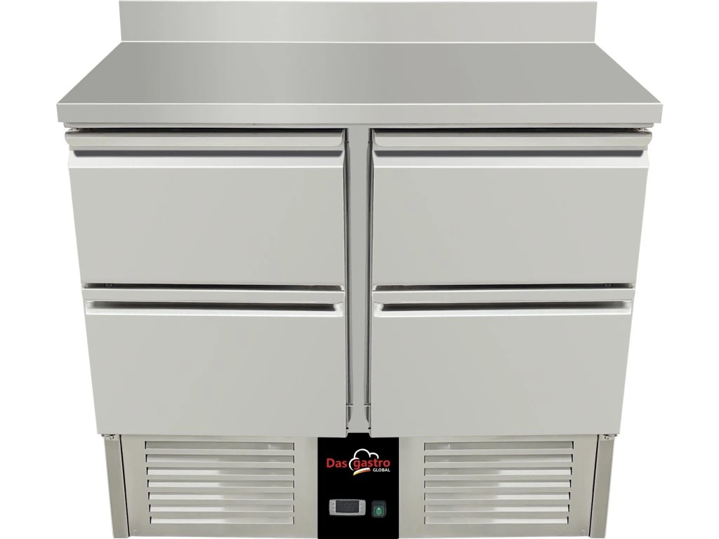 Stół chłodniczy 0,9 x 0,7 m - z tylną krawędzią i 4 szufladami