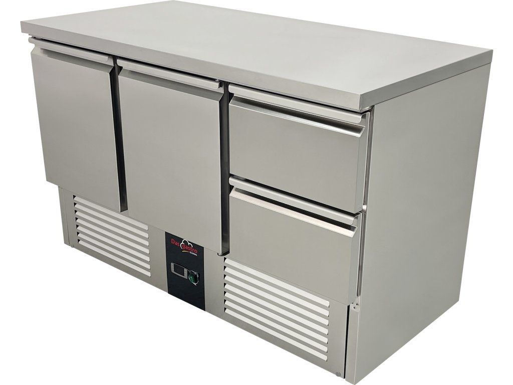 Stół chłodniczy - 1,37 x 0,7 m - z 2 drzwiami i 2 szufladami po prawej stronie