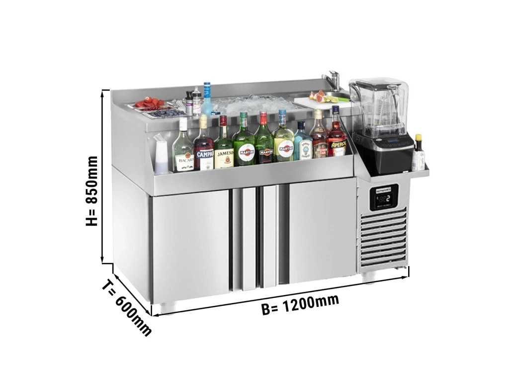 Stół chłodniczy do baru i napojów - 1200x600 mm - 150 litrów - z 2 drzwiami i półkami