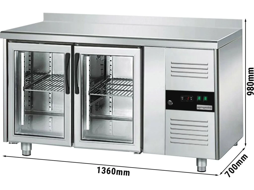 Stół chłodniczy do napojów ECO - 1360x700 mm - z 2 szklanymi drzwiami i panelem tylnym