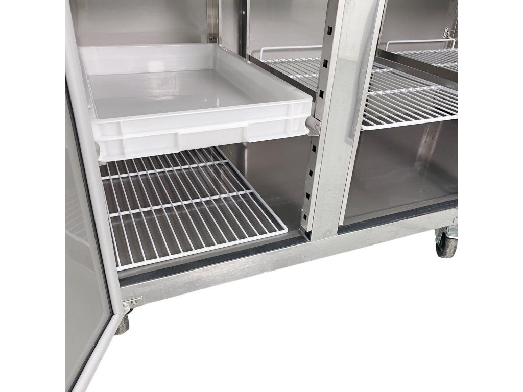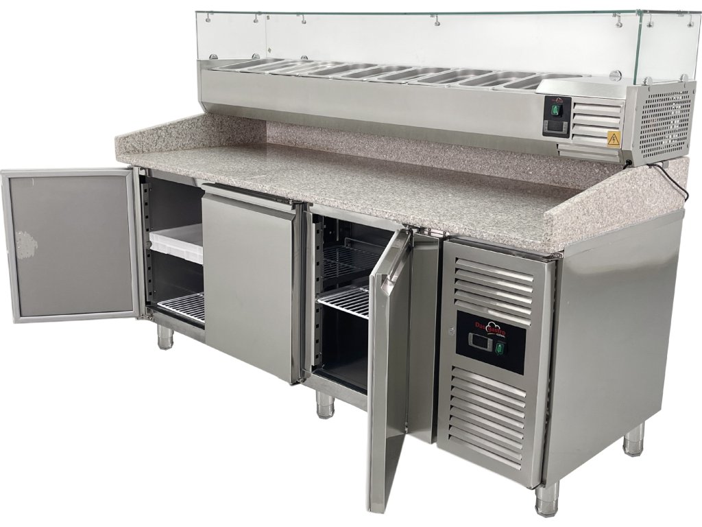 Stół chłodniczy do pizzy - 2015 x 800 mm - z 3 drzwiami i półką na 10 sztuk GN 1/4