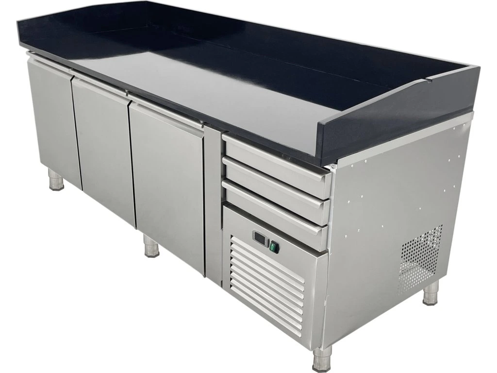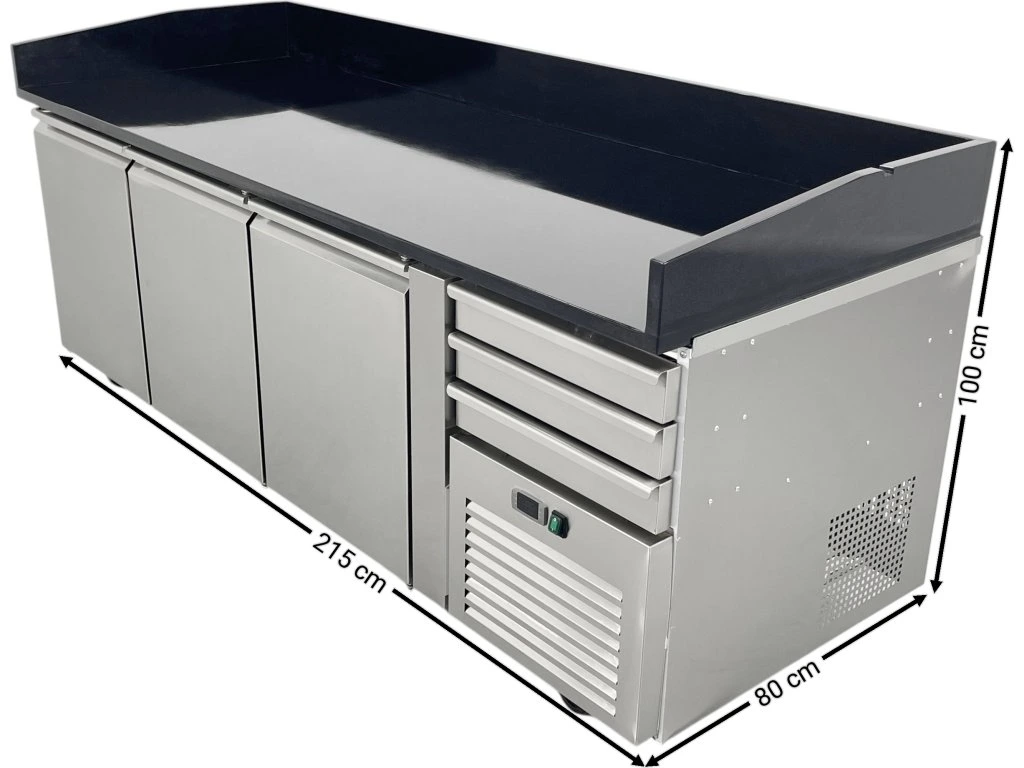 Stół chłodniczy do pizzy - 2015 x 800 mm - z czarnym blatem