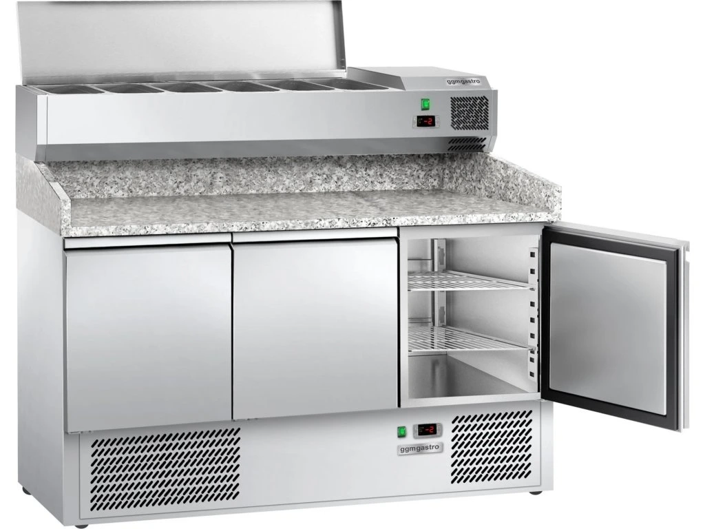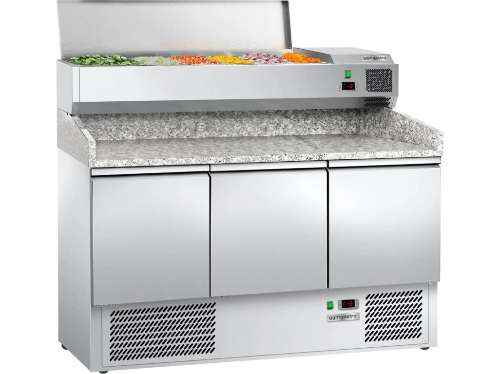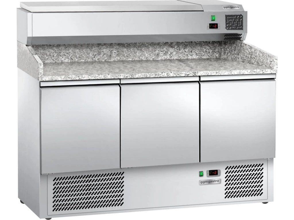 Stół chłodniczy do pizzy ECO - 1400x700mm - z 3 drzwiami - włącznie z witryną chłodniczą nadstawną - 6x GN 1/4