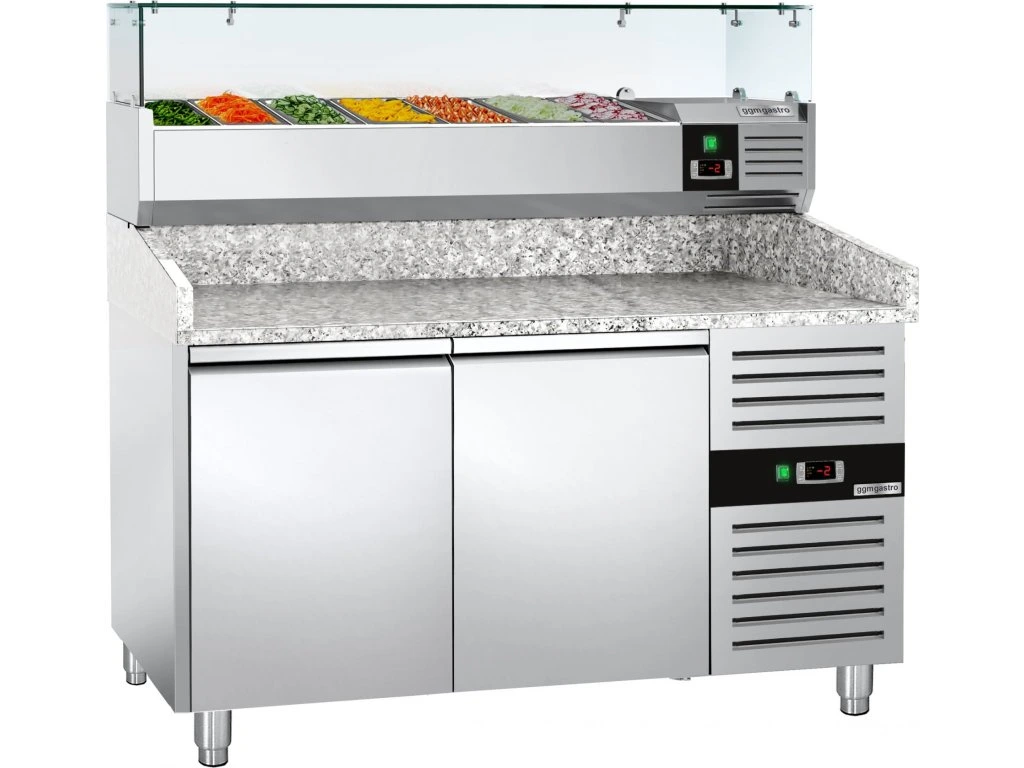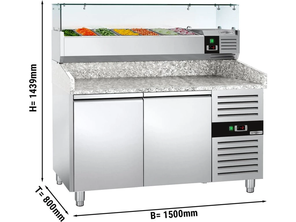 Stół chłodniczy do pizzy ECO - 1500x800mm - z 2 drzwiami - włącznie z witryną chłodniczą nadstawną - 7x GN 1/4