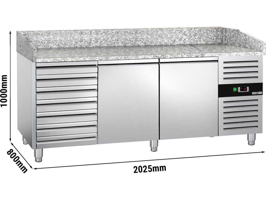 Stół chłodniczy do pizzy ECO - 2000x800mm - z 2 drzwiami i 7 szufladami