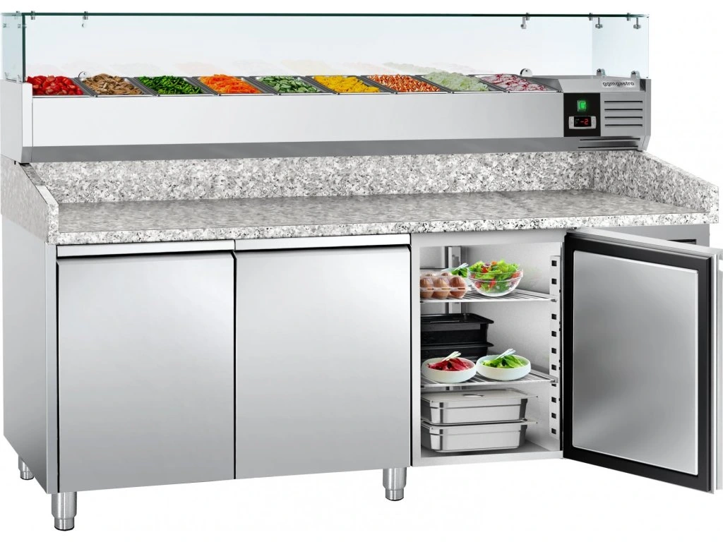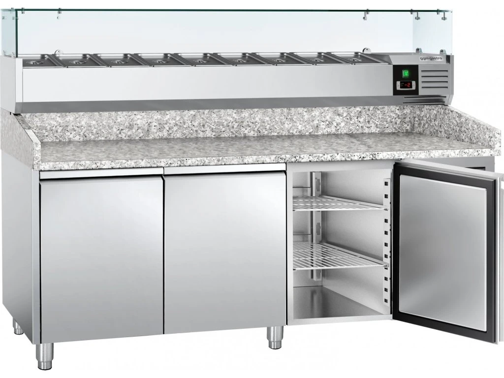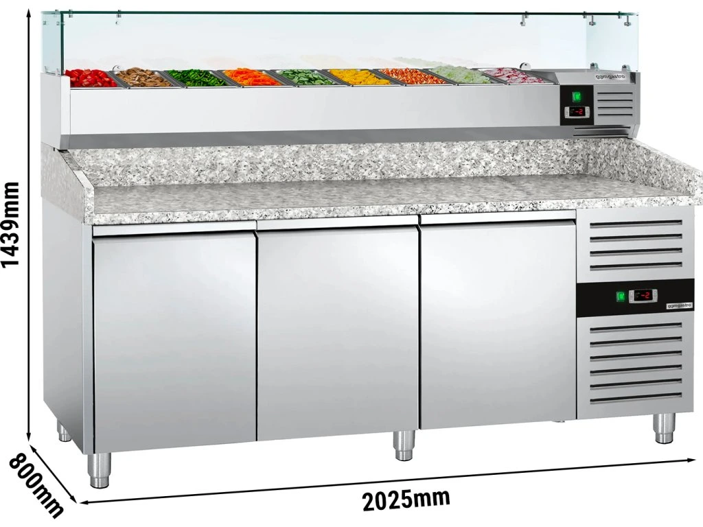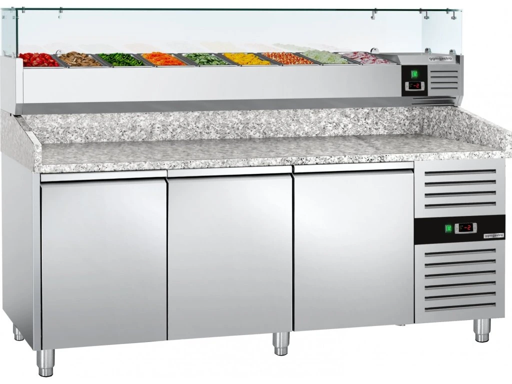 Stół chłodniczy do pizzy ECO - 2000x800mm - z 3 drzwiami - włącznie z witryną chłodniczą nadstawną - 9x GN 1/3