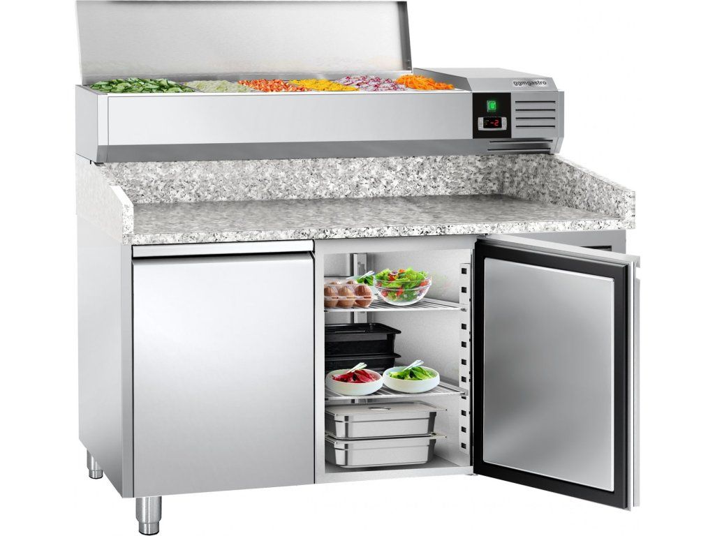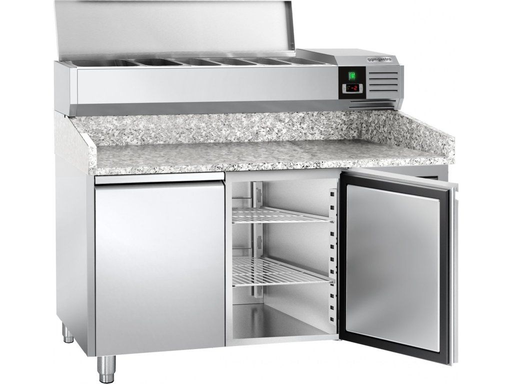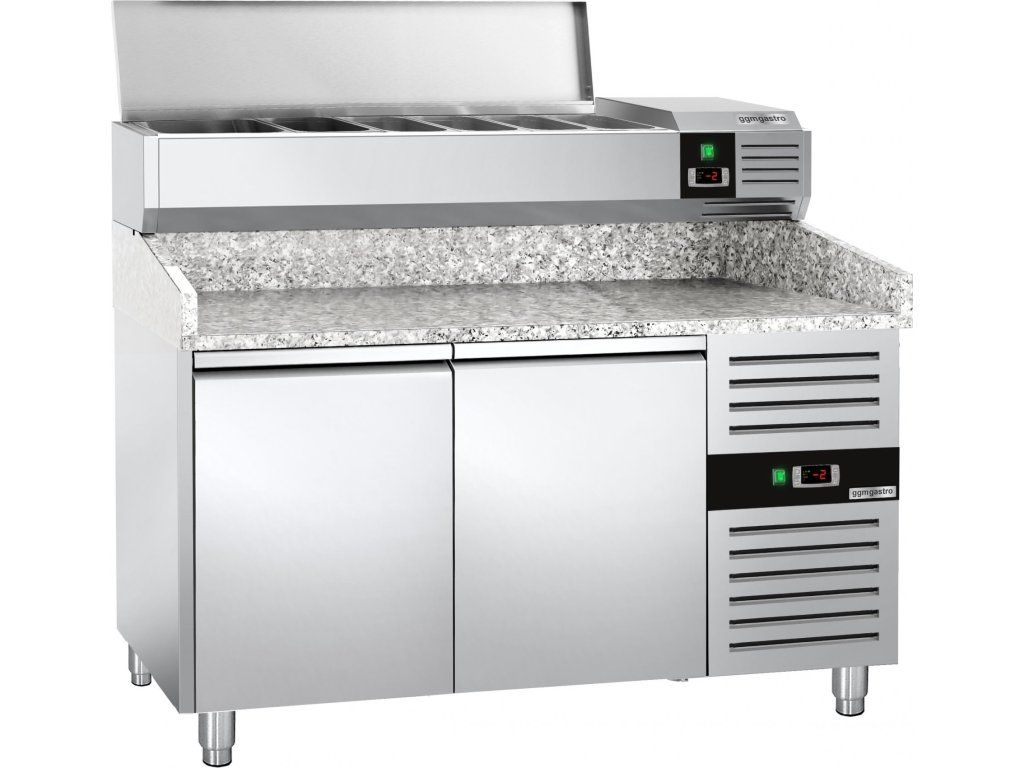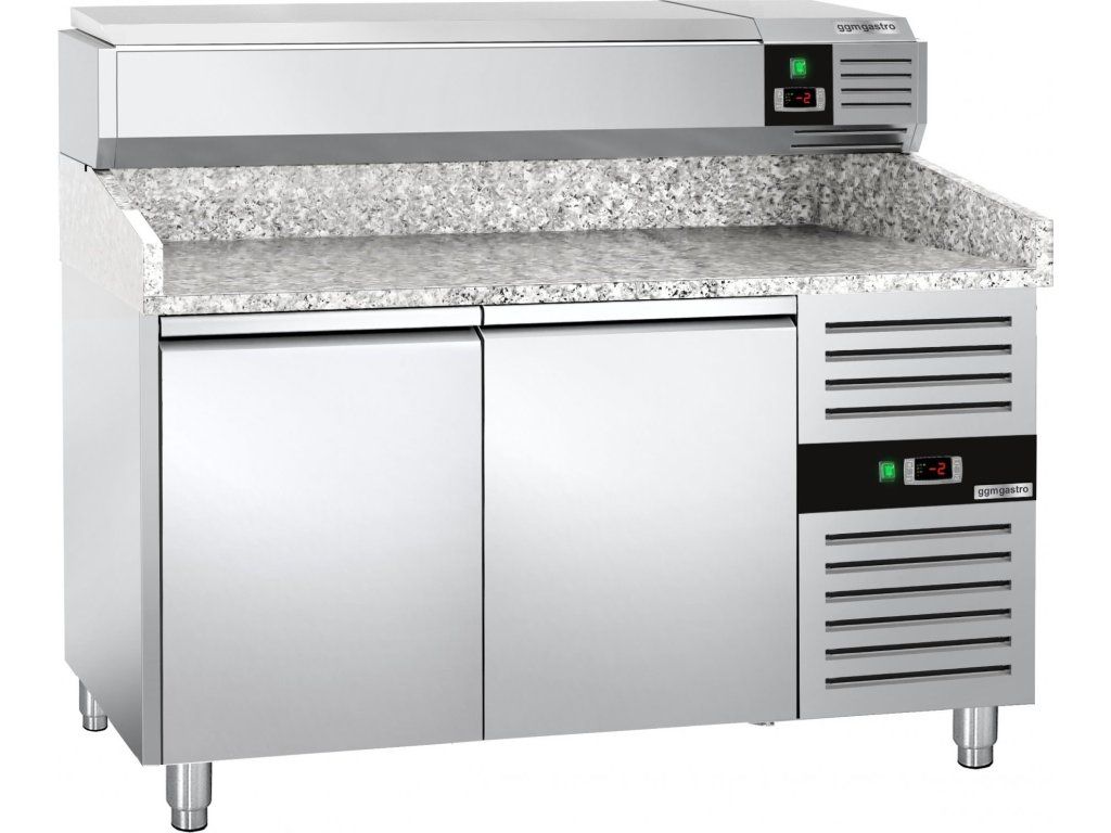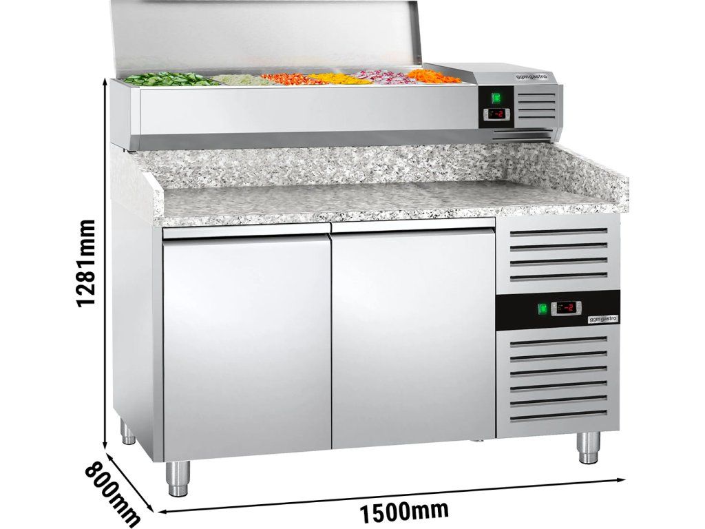 Stół chłodniczy do pizzy PREMIUM - 1500x800mm - z 2 drzwiami - włącznie z witryną chłodniczą nadstawną - 7x GN 1/4