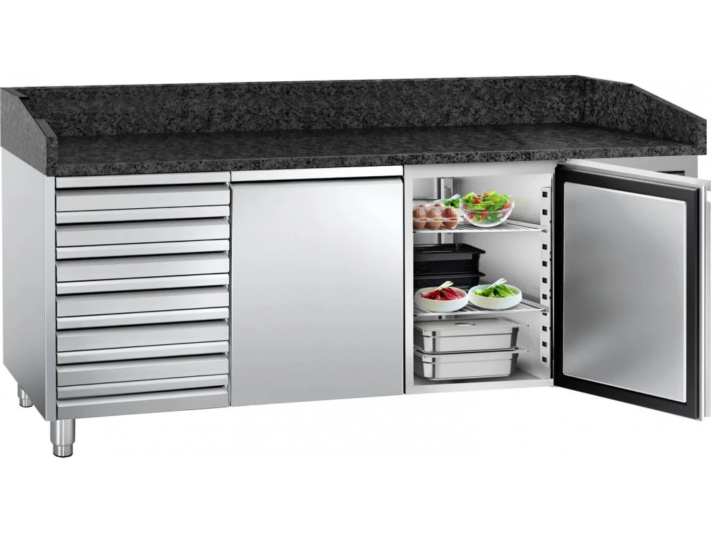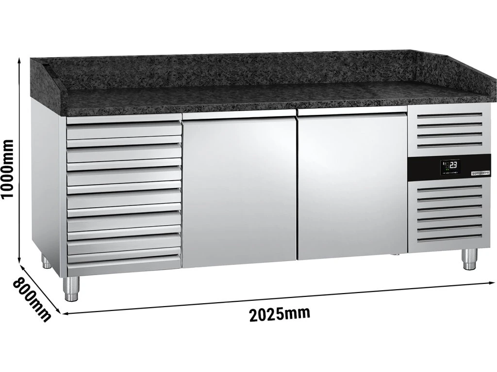 Stół chłodniczy do pizzy PREMIUM - 2000x800mm - z 2 drzwiami i 7 szufladami
