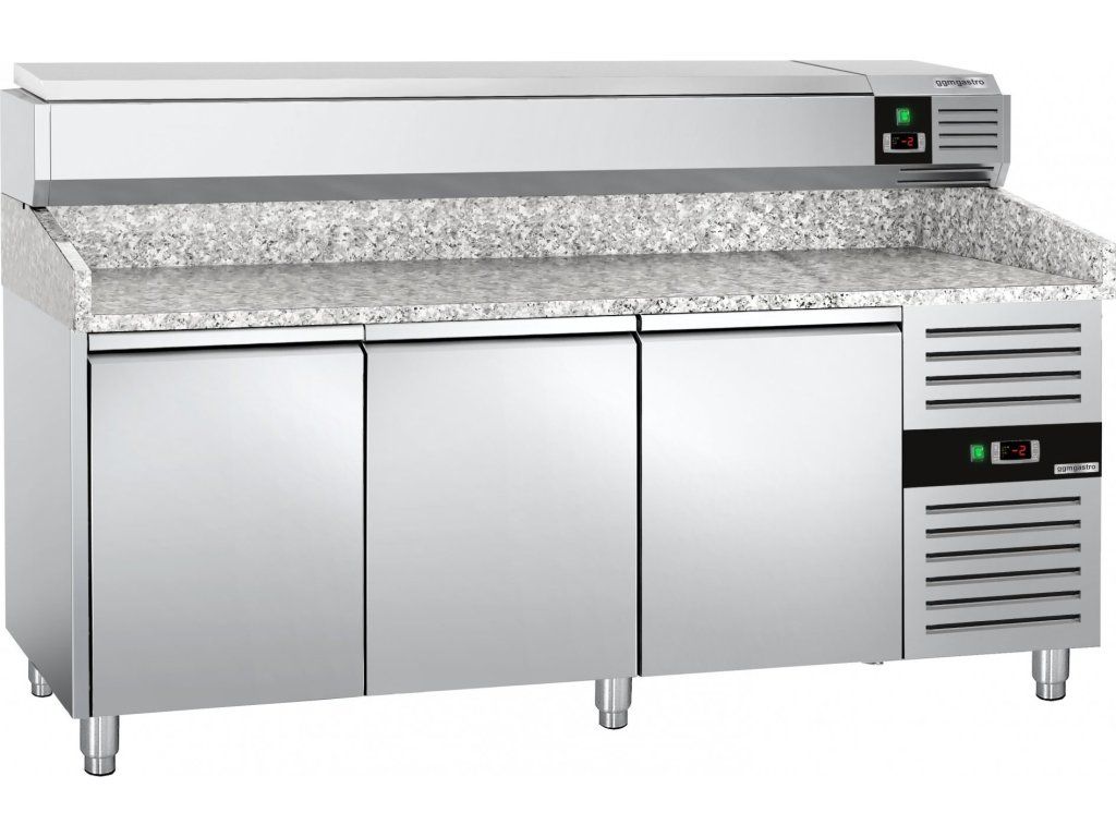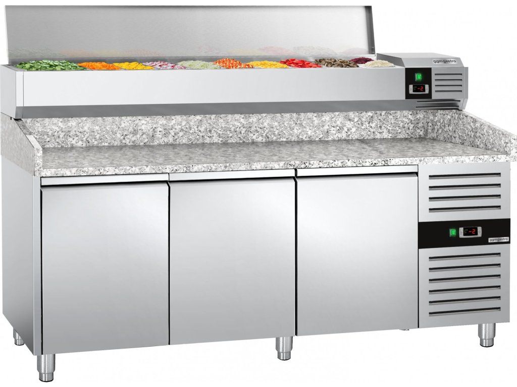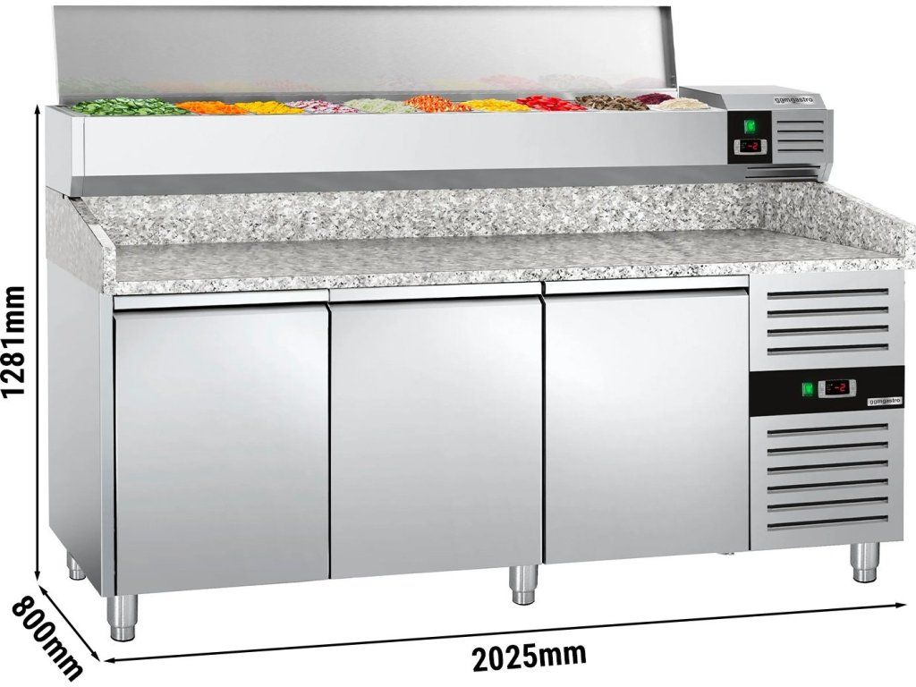 Stół chłodniczy do pizzy PREMIUM - 2000x800mm - z 3 drzwiami - włącznie z witryną chłodniczą nadstawną - 9x GN 1/3
