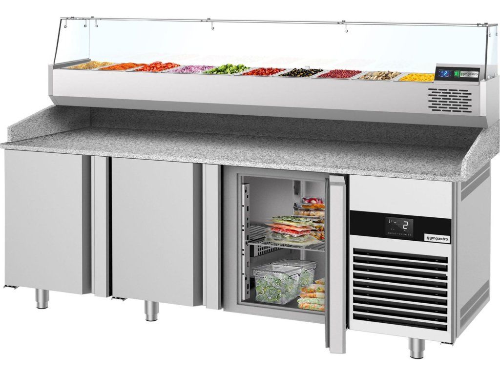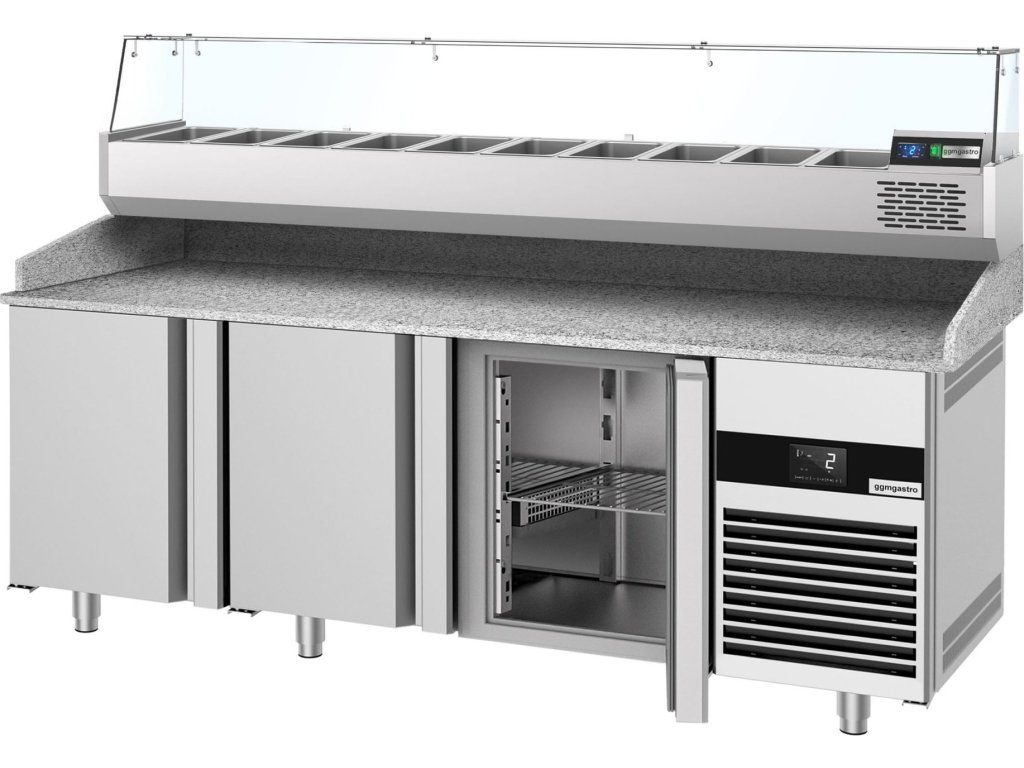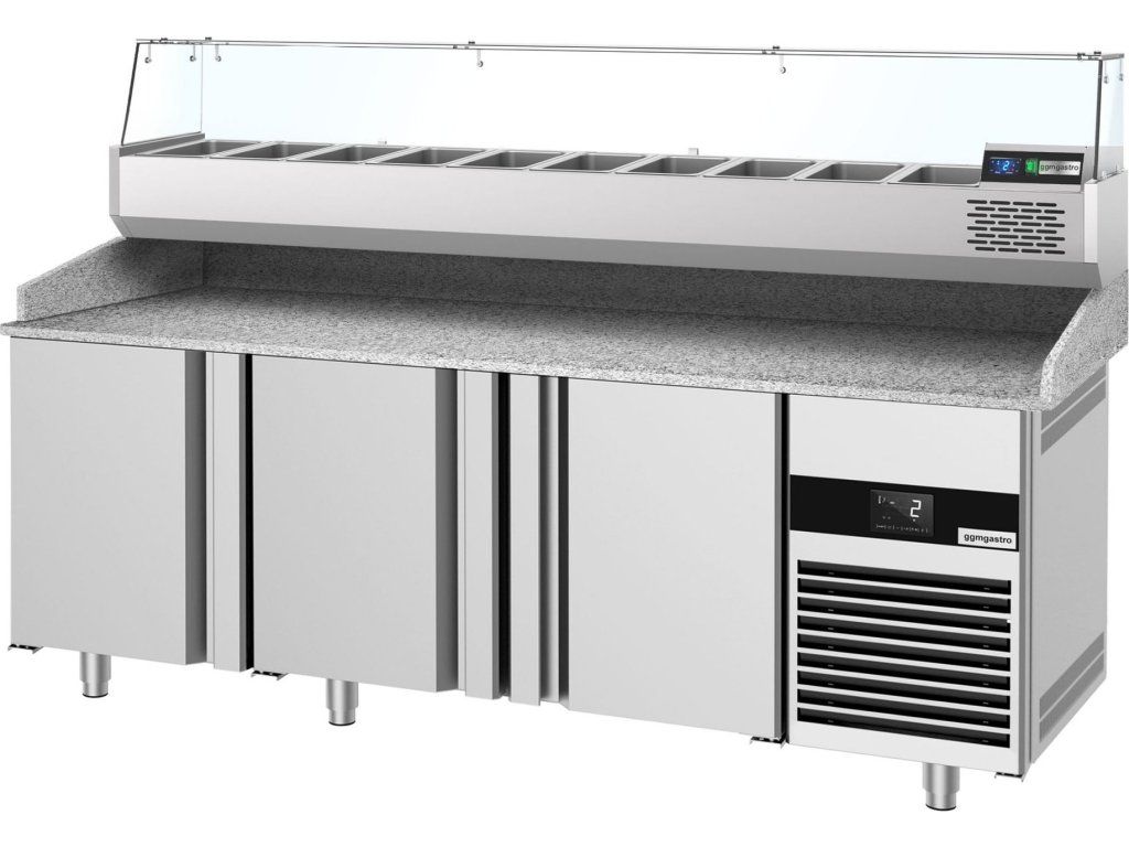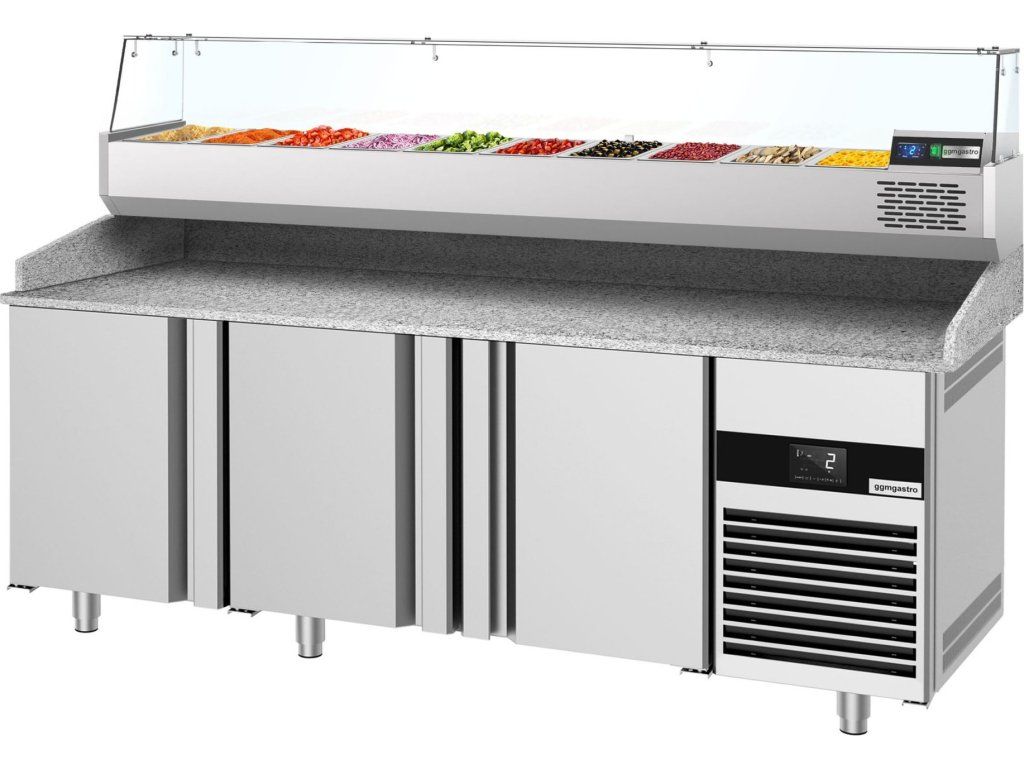 Stół chłodniczy do pizzy PREMIUM - 2100x800mm - z 3 drzwiami - włącznie z witryną chłodniczą nadstawną - 10x GN 1/3