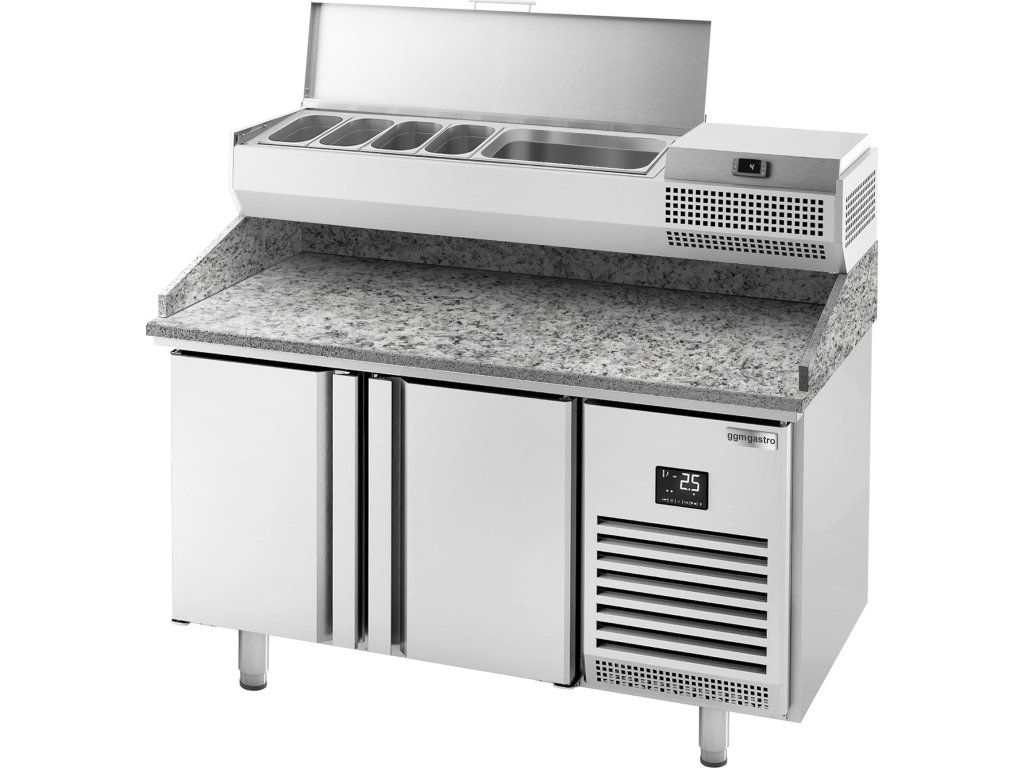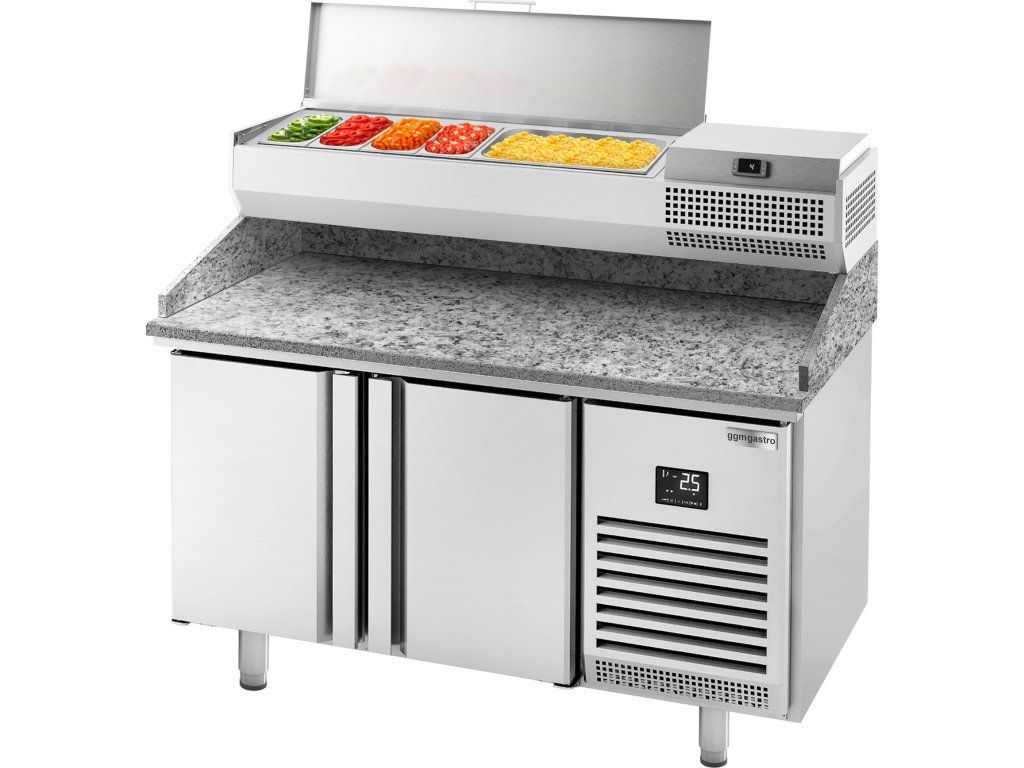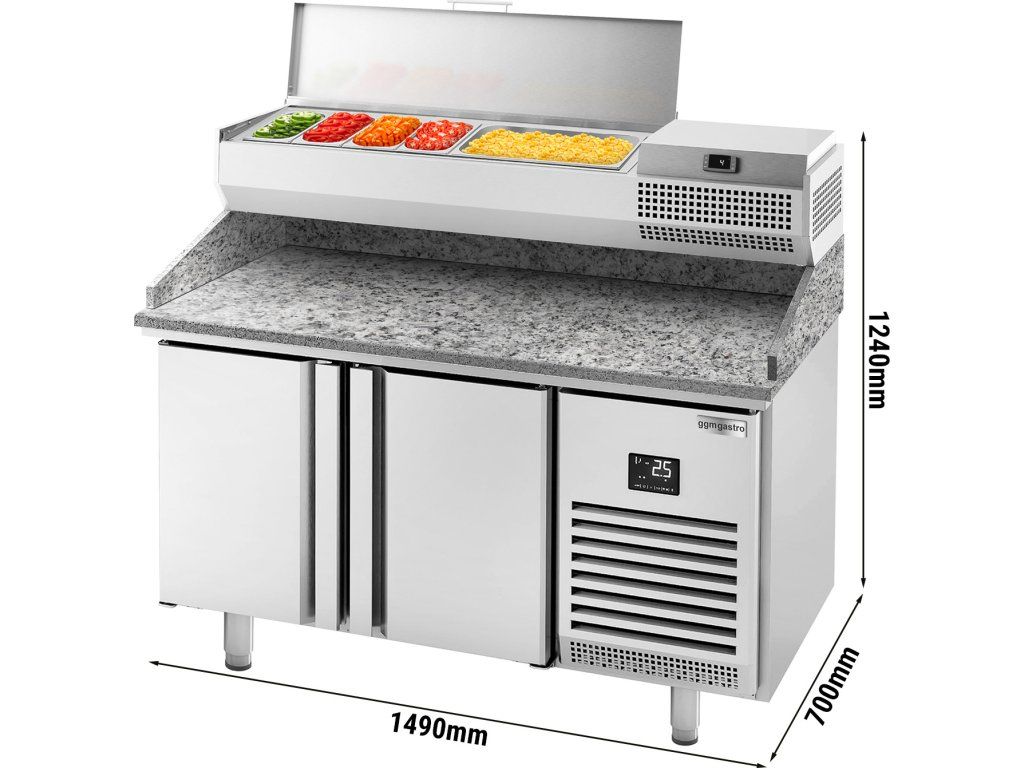 Stół chłodniczy do pizzy PREMIUM PLUS - 1490x700mm - z 2 drzwiami - włącznie z witryną chłodniczą nadstawną - 6x GN 1/4