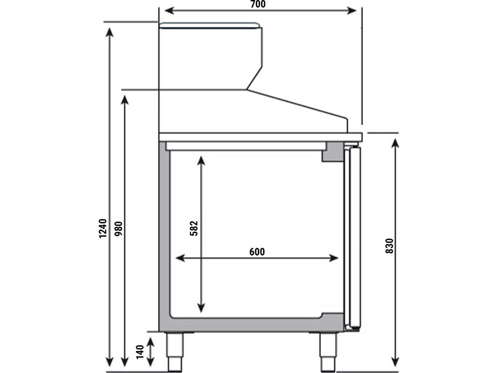 - Nadstawna witryna chłodnicza : na przykład 6 x GN 1/4 Pojemnik, GN 1/2, GN 1/3 również możliwe