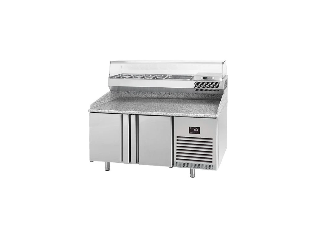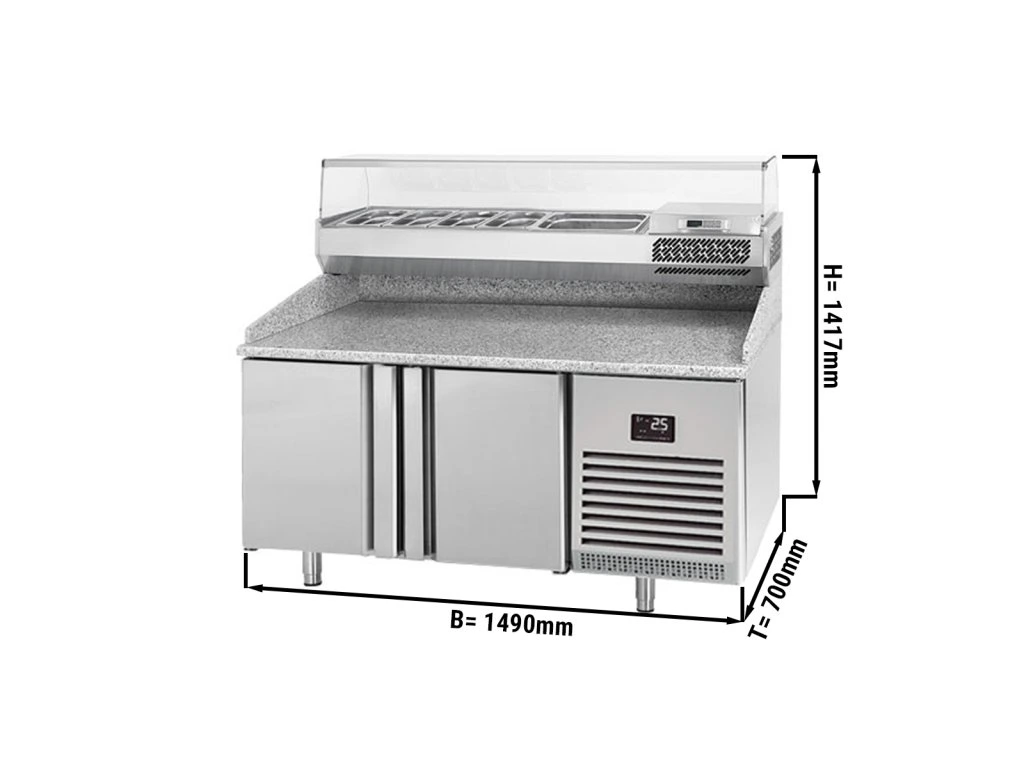 Stół chłodniczy do pizzy PREMIUM PLUS - 1490x700mm - z 2 drzwiami - włącznie z witryną chłodniczą nadstawną - 6x GN 1/4
