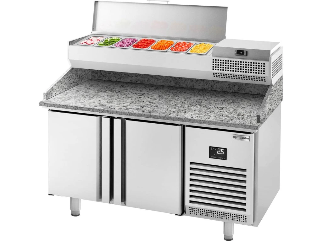 Stół chłodniczy do pizzy PREMIUM PLUS - 1783x800mm - z 2 drzwiami - włącznie z witryną chłodniczą nadstawną - 7x GN 1/4