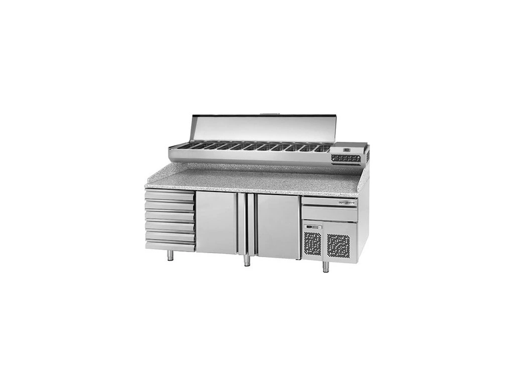 Stół chłodniczy do pizzy PREMIUM PLUS - 2305x800mm - z 2 drzwiami & 6 szufladami - włącznie z witryną chłodniczą nadstawną - 11x GN 1/4