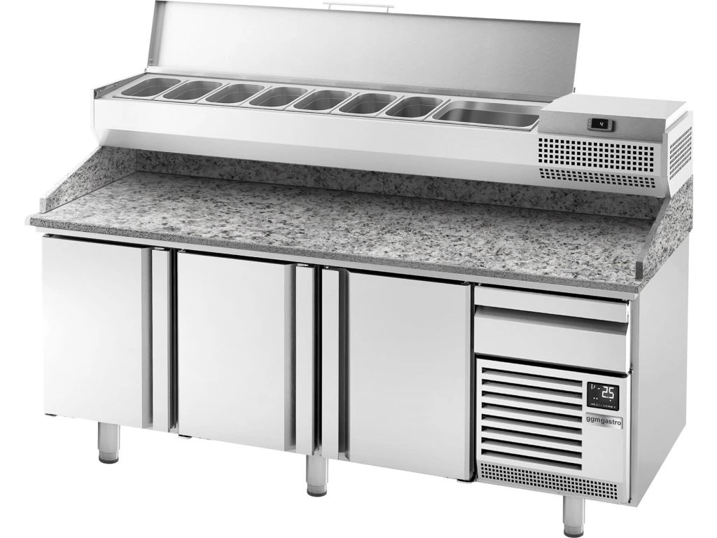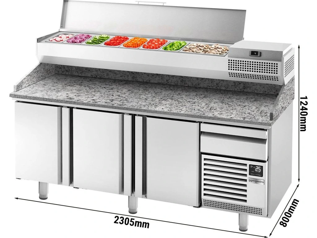 Stół chłodniczy do pizzy PREMIUM PLUS - 2305x800mm - z 3 drzwiami - włącznie z witryną chłodniczą nadstawną - 10x GN 1/3