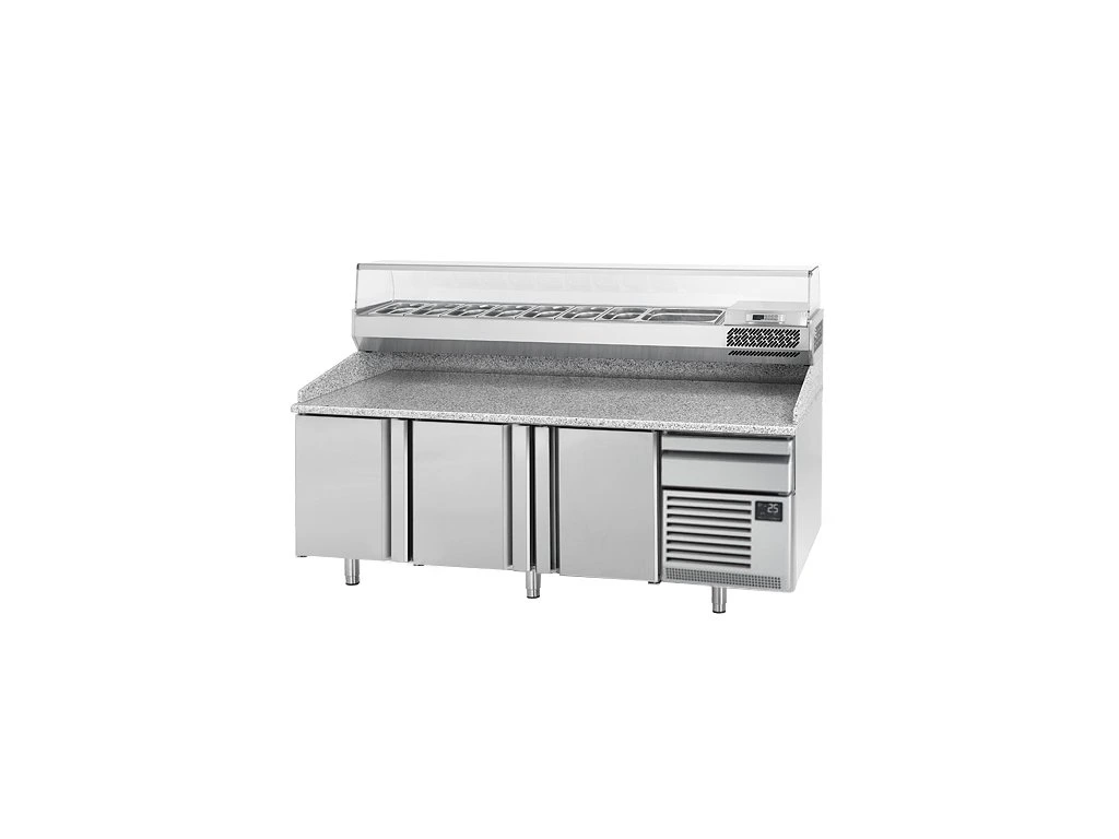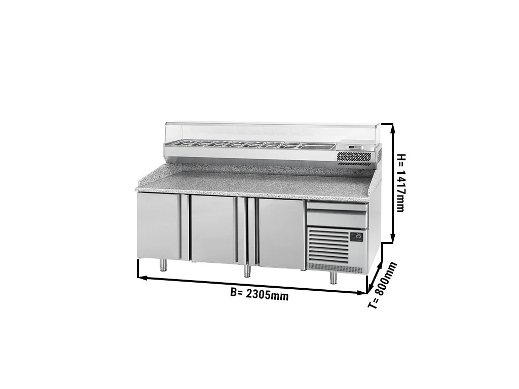 Stół chłodniczy do pizzy PREMIUM PLUS - 2305x800mm - z 3 drzwiami - włącznie z witryną chłodniczą nadstawną - 10x GN 1/3